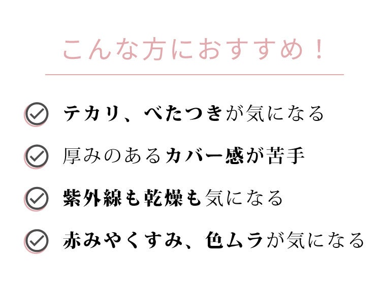 1."きれいな素肌" 敏感肌特有の赤みをふわっとカバー