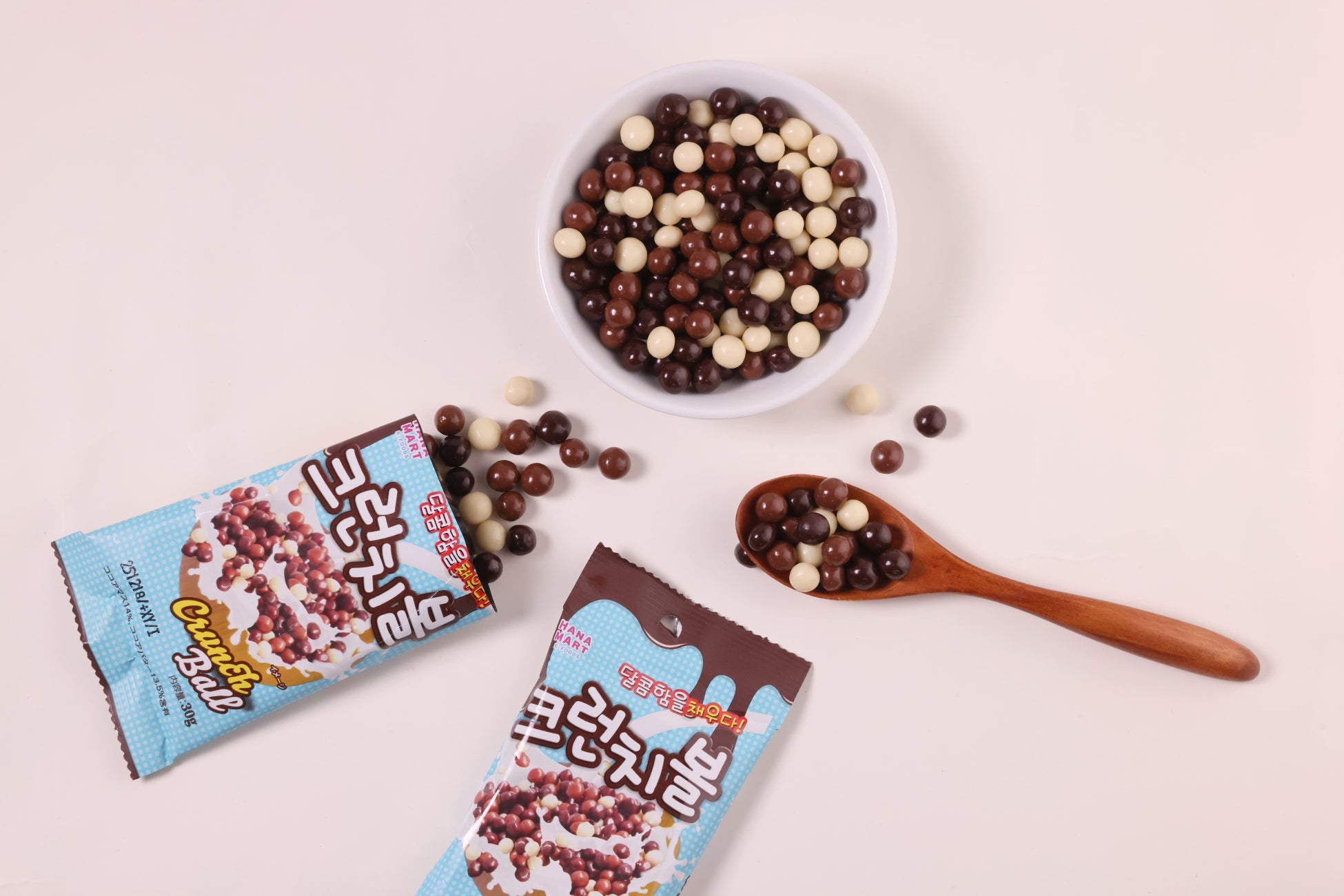 3種のチョコ(ミルク・ビター・ホワイト)がコーティングされたサクサクのクランチボール。韓国でも販売されていない弊社だけのオリジナル商品です。