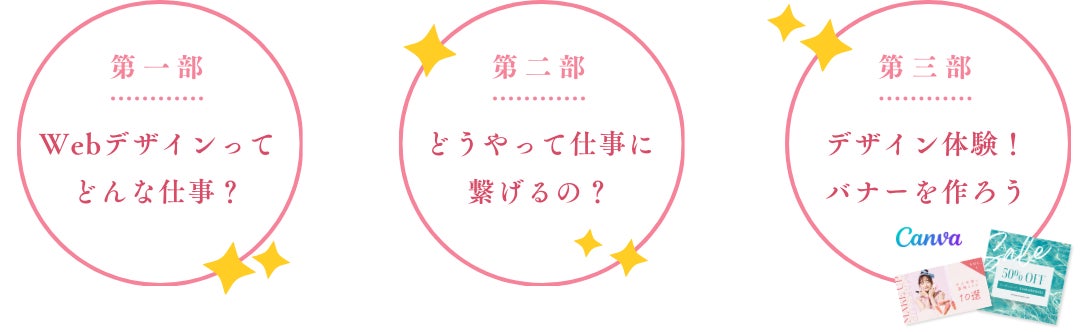 このように就業形態や就業場所を自由に選べること、事務職に比べて年収が高いことなど近年女性の注目が集まっているWebデザインですが、独学での習得が困難であることやノウハウがなければ仕事に繋げられず挫折してしまう方も多く見られます。今回のセミナーでは初心者に寄り添った内容で、セミナー終了後すぐに求職活動に活かせる知識をお届けいたします。