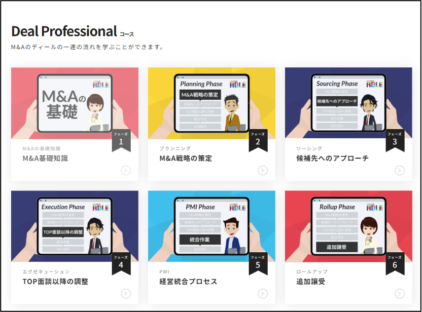 そこでNEWOLDは、「M&Aの確かな知識とノウハウを世に広めたい」という想いのもと、全て自社制作したM&Aの教育・研修サービス「NEWOLD ABLE(ニューオールド・エイブル)」を展開しています。