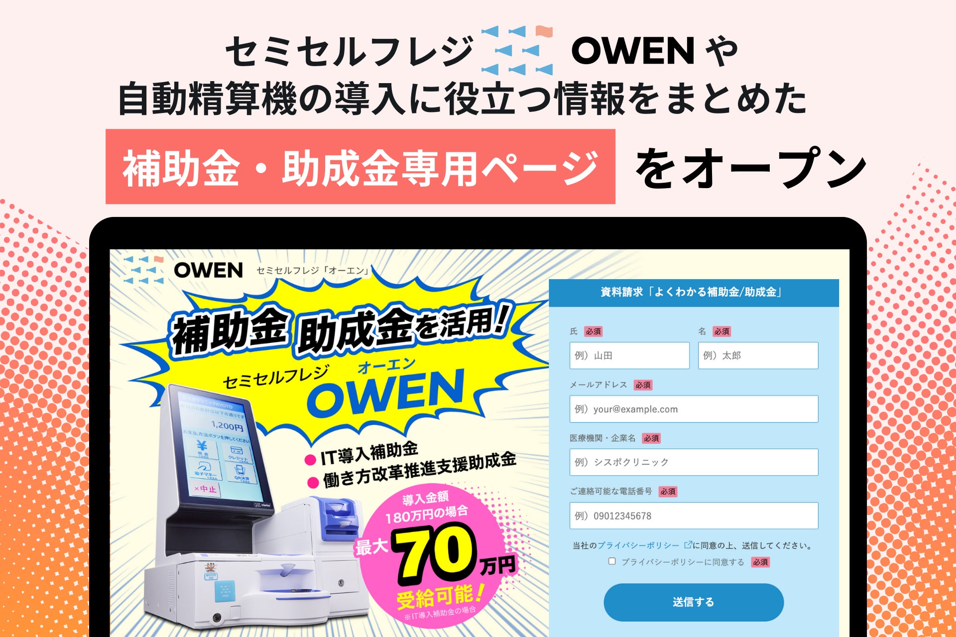 医療機関向けセミセルフレジ『OWEN(オーエン)』、セミセルフレジ導入に役立つ補助金・助成金専用ページをオープン!