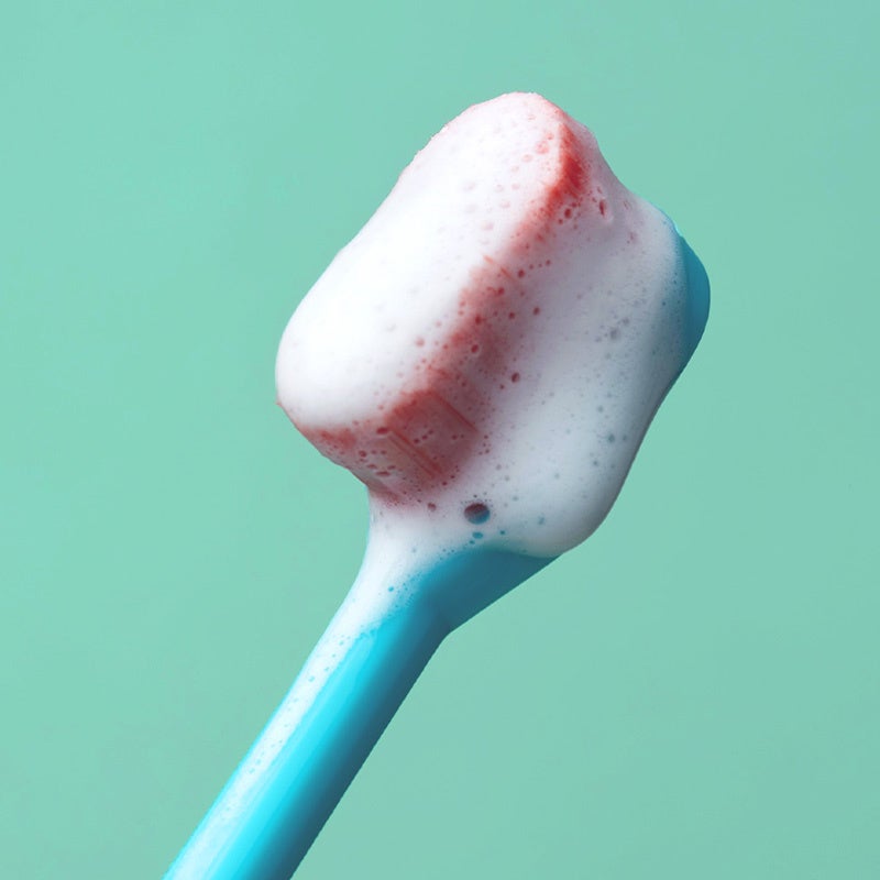 歯ブラシのような見た目の「ポアクリーニングブラシ」は1万本の毛を使用していて、柔らかく優しい肌触りが特徴的です。見た目がかわいいだけでなく、クレンザーと一緒に使用することで細かい毛穴汚れも落とせます。