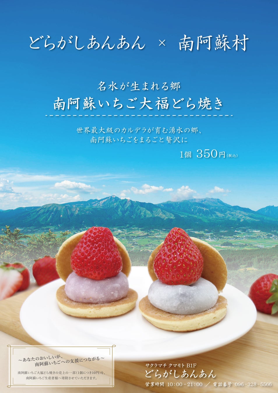 今回も、南阿蘇村の水と美味しい空気、そして豊かな大地に育まれたいちごを使ったどらやきの販売を行いながら村の公式キャラクター「かなばあちゃん」による店頭でのPR活動や、南阿蘇村を往訪するツーリズムプランも展開予定です。