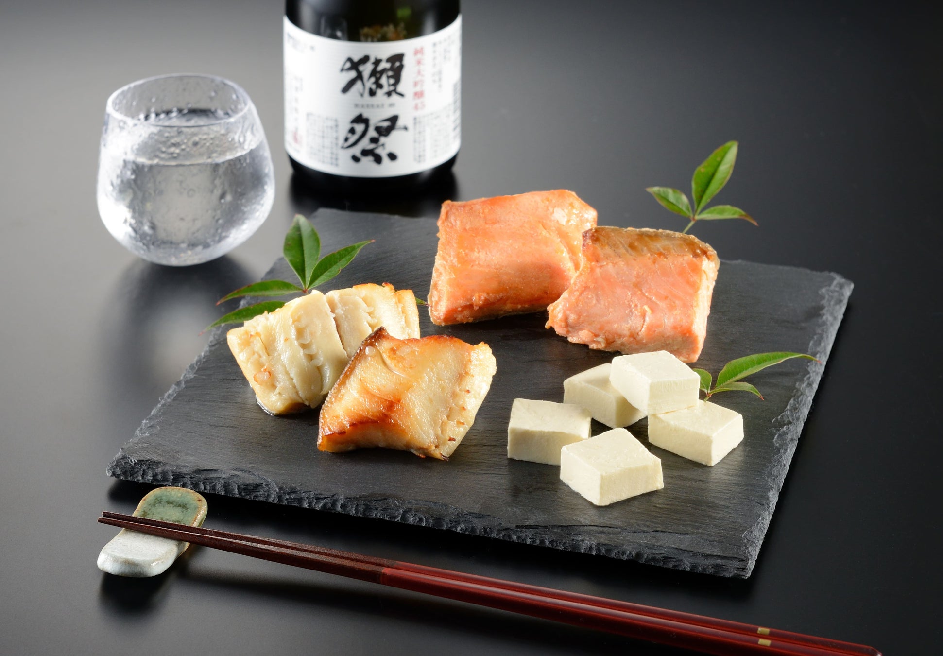 最高の酒米と言われる「山田錦」を磨きあげ造られた銘酒「獺祭」。米本来の繊細な甘み、華やかでフルーティーな香りが特徴です。今回使用させて頂いた純米大吟醸酒粕の豊かな風味と旨味をより味わって頂く為、「銀鱈粕漬焼き」、「銀鮭粕漬焼き」の魚惣菜2点について弊社では通常、漬け床に漬け込み後に一度軽く洗い流してから焼き上げる工程を見直し、漬け床を洗い落とさず、丁寧に手で拭い落とし、極力酒粕の旨味を残した状態のまま焼き上げました。また、「クリームチーズ粕漬」については北海道十勝産のクリームチーズを使用することにより、純米大吟醸酒粕に負けないコクと旨味にて発酵食材同士の相乗効果にて酒肴としてそっと日本酒に寄り添う商品に仕上がりました。