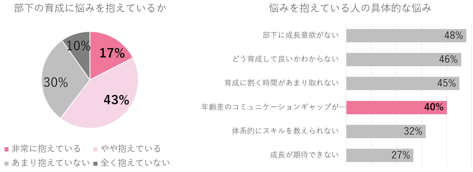 2023年に引き続き、2024年の調査でも管理職の6割が部下育成に悩みを抱えていることが分かり、また会社からの支援を期待している姿が判明しました。
