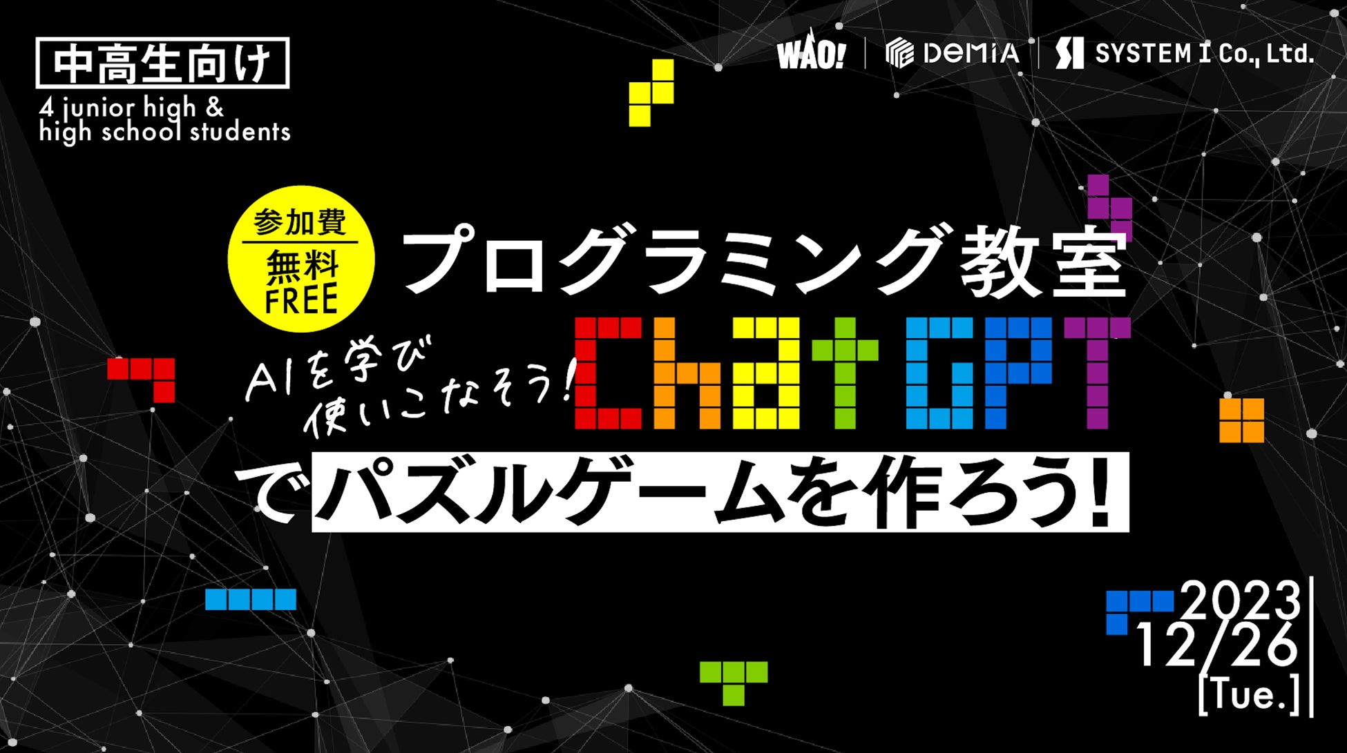 【対象者】生成AI・プログラミングにご興味がある中学・高校生(プログラミング知識・経験は不問)