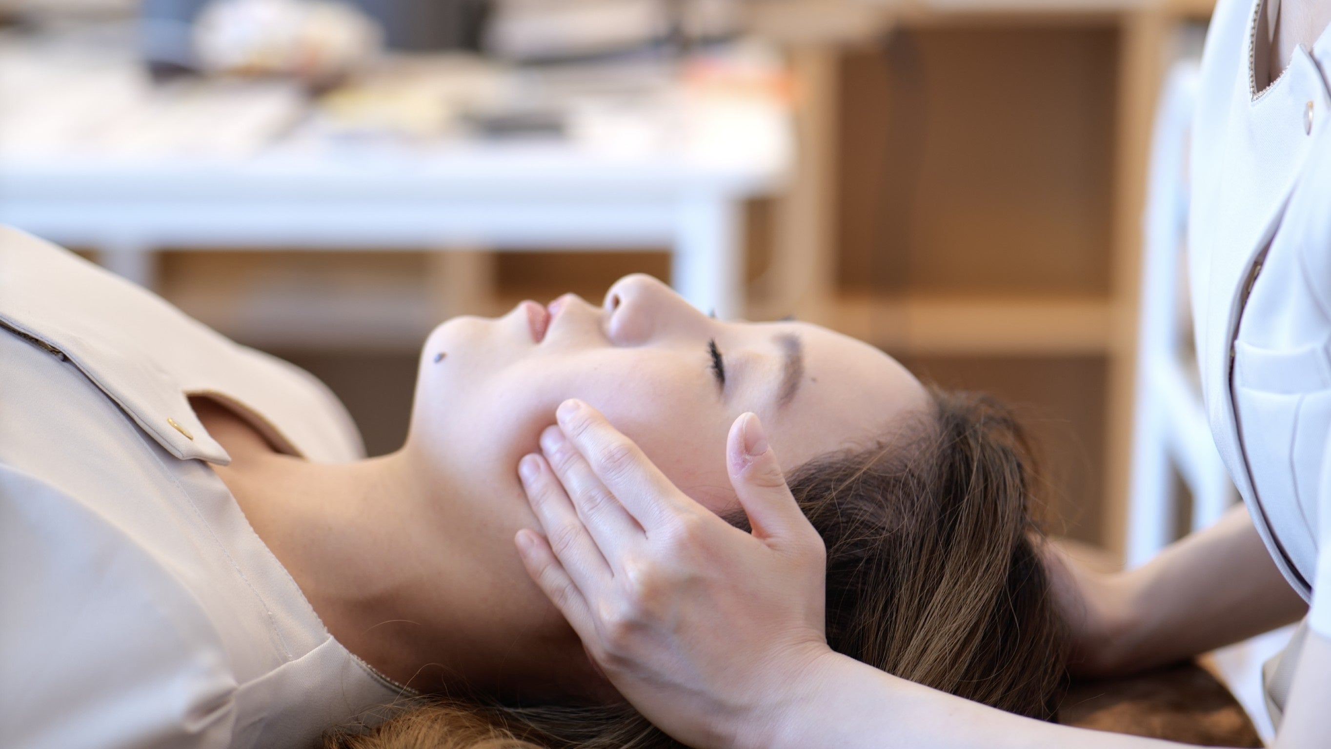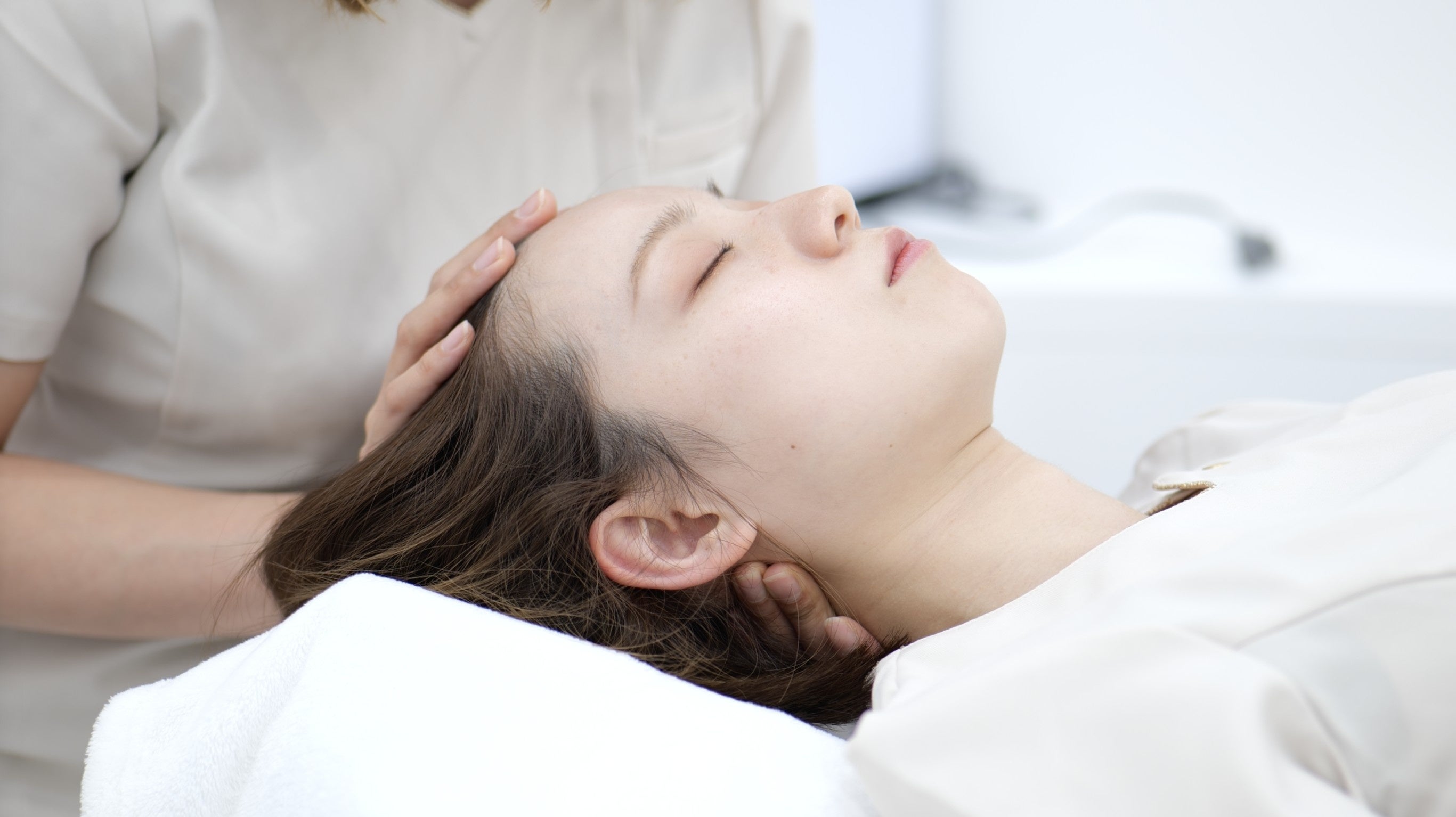 脳脊髄液を流し、自律神経を整え、正しい位置に骨を動かしハチ張り(頭の中で一番張っている部分)を頭蓋骨矯正します。 基本的に痛みが少なく、睡眠に誘われるヘッドスパ感覚で受けていただけます。