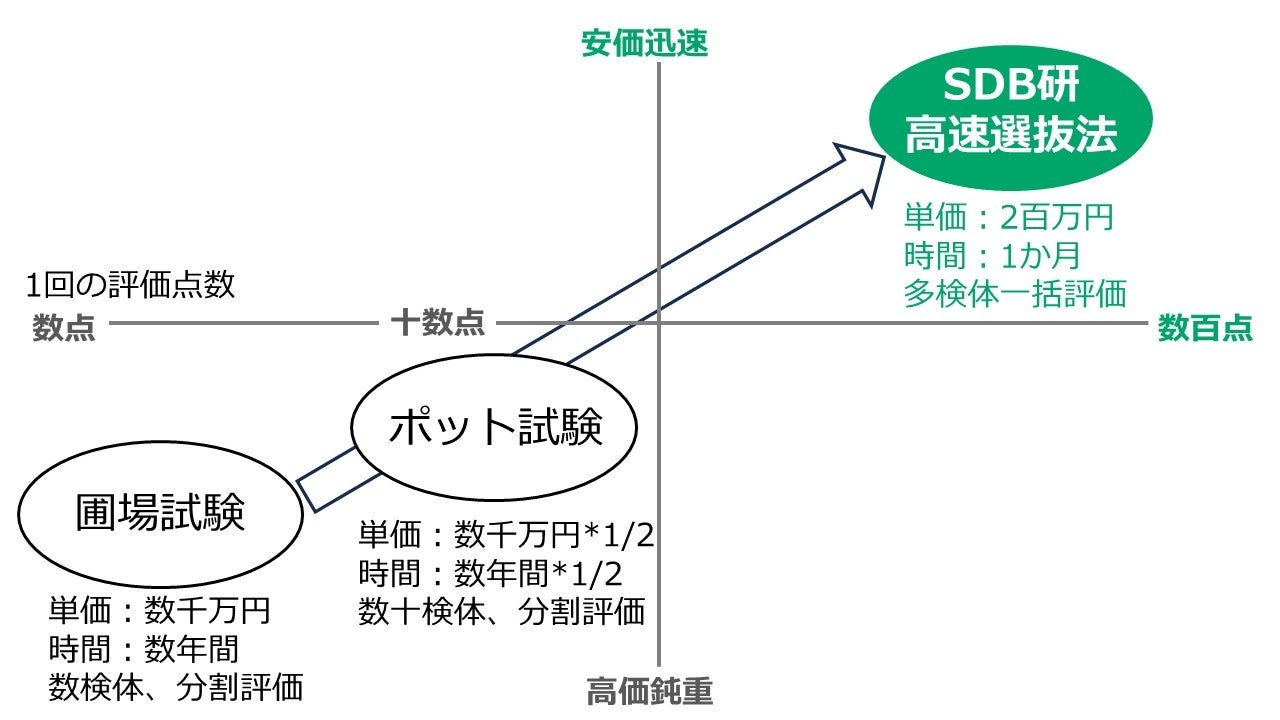 そこで、我々は、農業資材の選抜において、多数の資材を同一条件下で迅速に比較できる高速選抜法の開発を行いました。