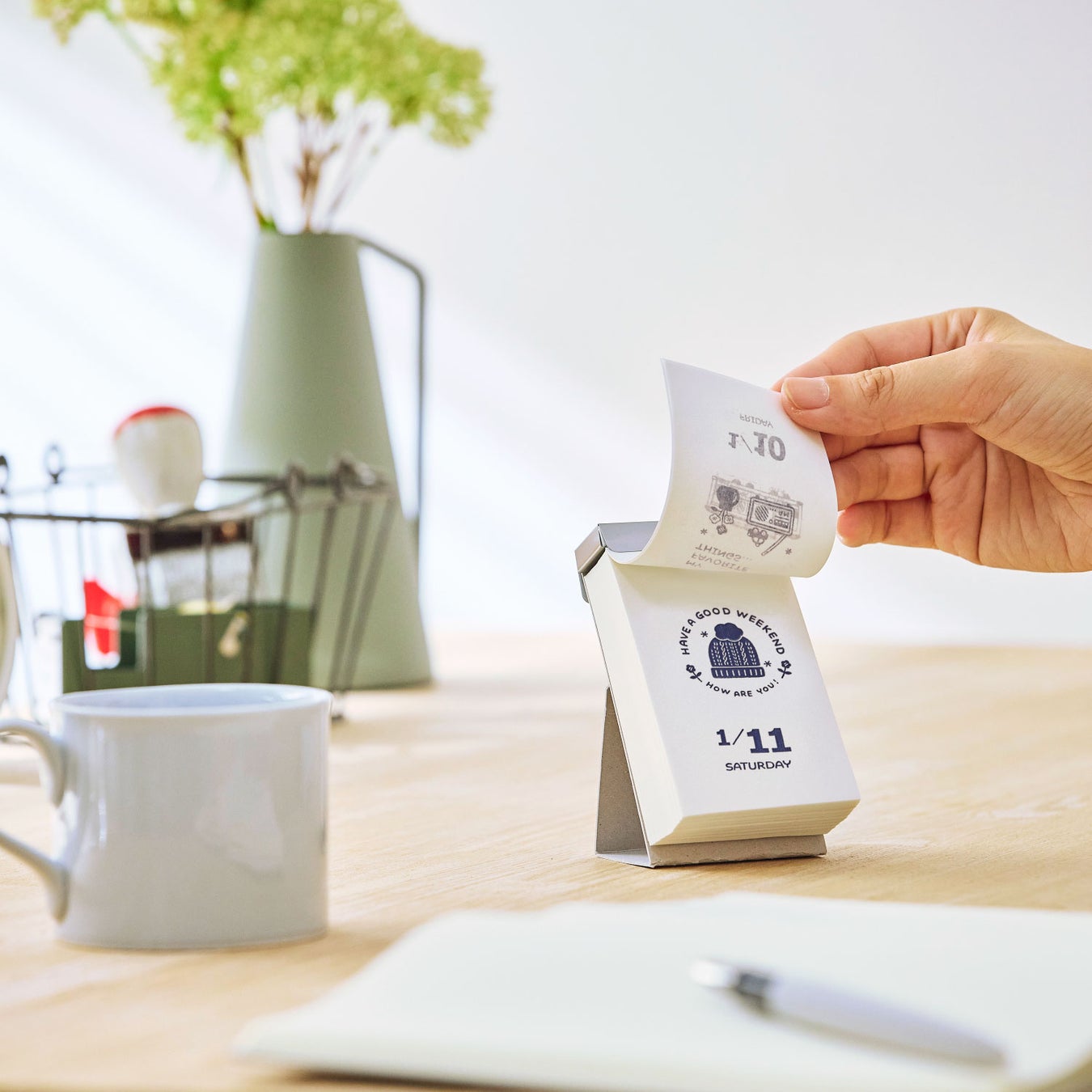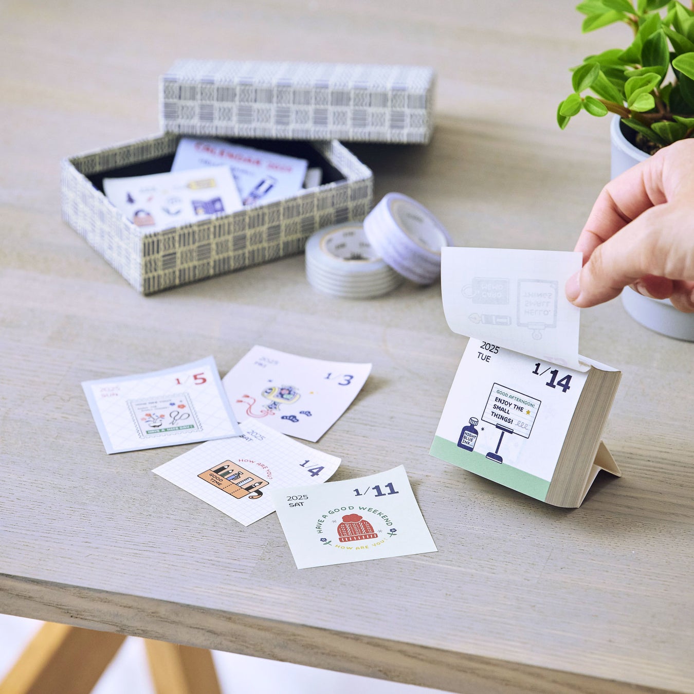 「eric color 日めくり」は、ericが描く小さなかわいらしいもので溢れた世界を詰め込んだ日めくりカレンダーです。手のひらに収まるコンパクトなサイズ(6×6cm)で、カラフルでかわいらしい絵柄が毎日を彩ります。手帳に貼って楽しむにもちょうど良いサイズ感です。