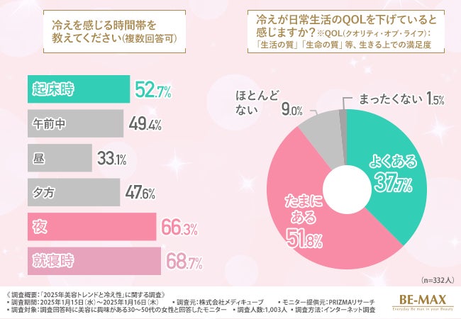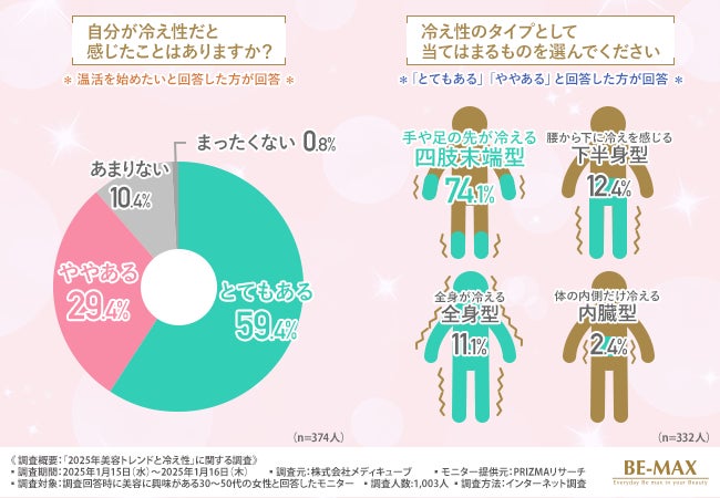 株式会社メディキューブ(所在地:東京都中央区、代表者:稲川 竜生)は、美容に興味がある30~50代の女性を対象に、「2025年美容トレンドと冷え性」に関する調査を実施しました。