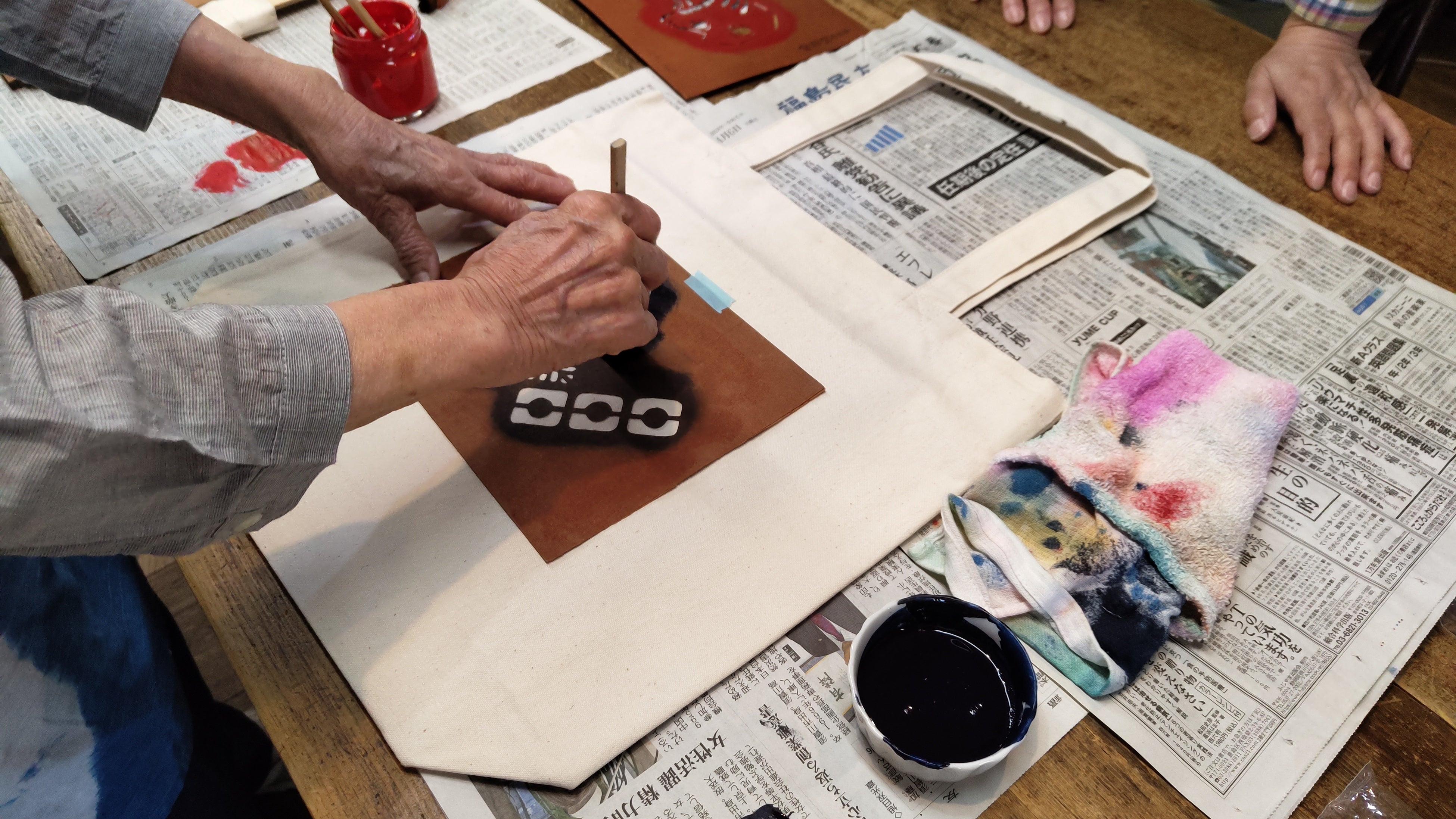 「染織工房れんが」は、会津型の伝統と技術を守り、広めることを目的とした「会津型研究会」によって設立されました。会長の冠木昭子は、地域のイベントで講師を務めるほか、会津型を用いた商品の開発も行っています。