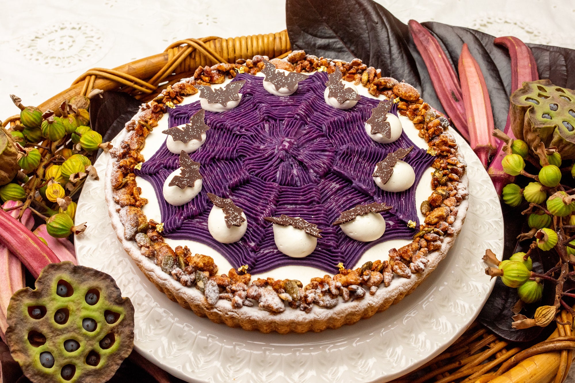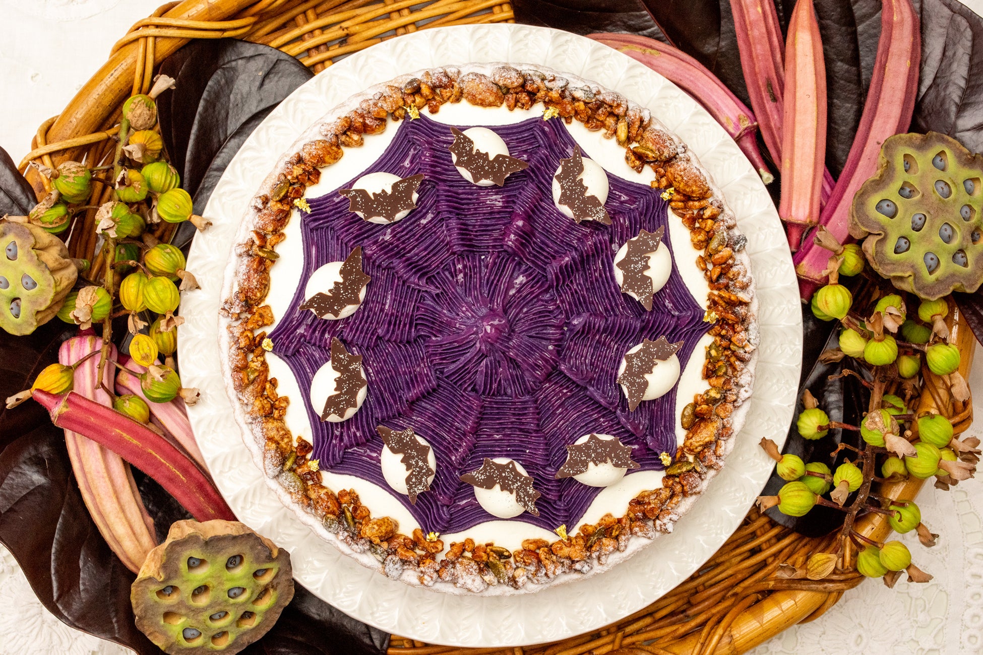紫芋で絞ったクモの巣を飛びまわるコウモリたち!ワクワク感たっぷりのハロウィン限定の新作タルト