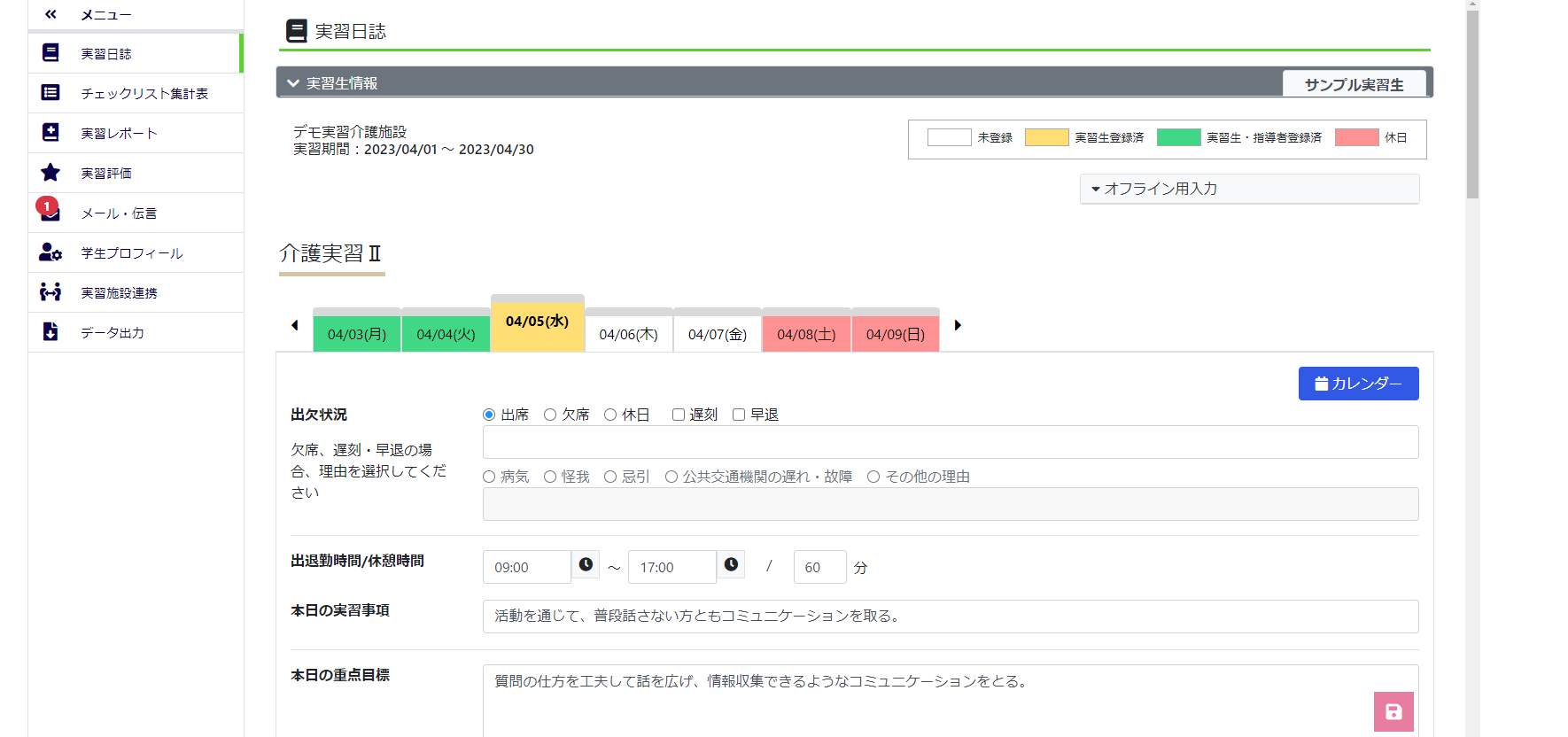 介護福祉士の養成校では、実践力習得のために、介護施設など現場での実習を行います。現場実習では、学生が日々の学習内容を紙の実習日誌に記録し、教員および実習先指導者がその日誌に指導や助言を記入するというアナログな形式での運用が一般的です。そのため教員や実習先指導者が実習関連の情報を一覧化しにくく、必要な情報をスムーズに参照できない、また教員が実習中の学生の学習状況をリアルタイムに把握することが難しく、必要な指導・フォローアップをタイムリーに提供できないといった課題があります。