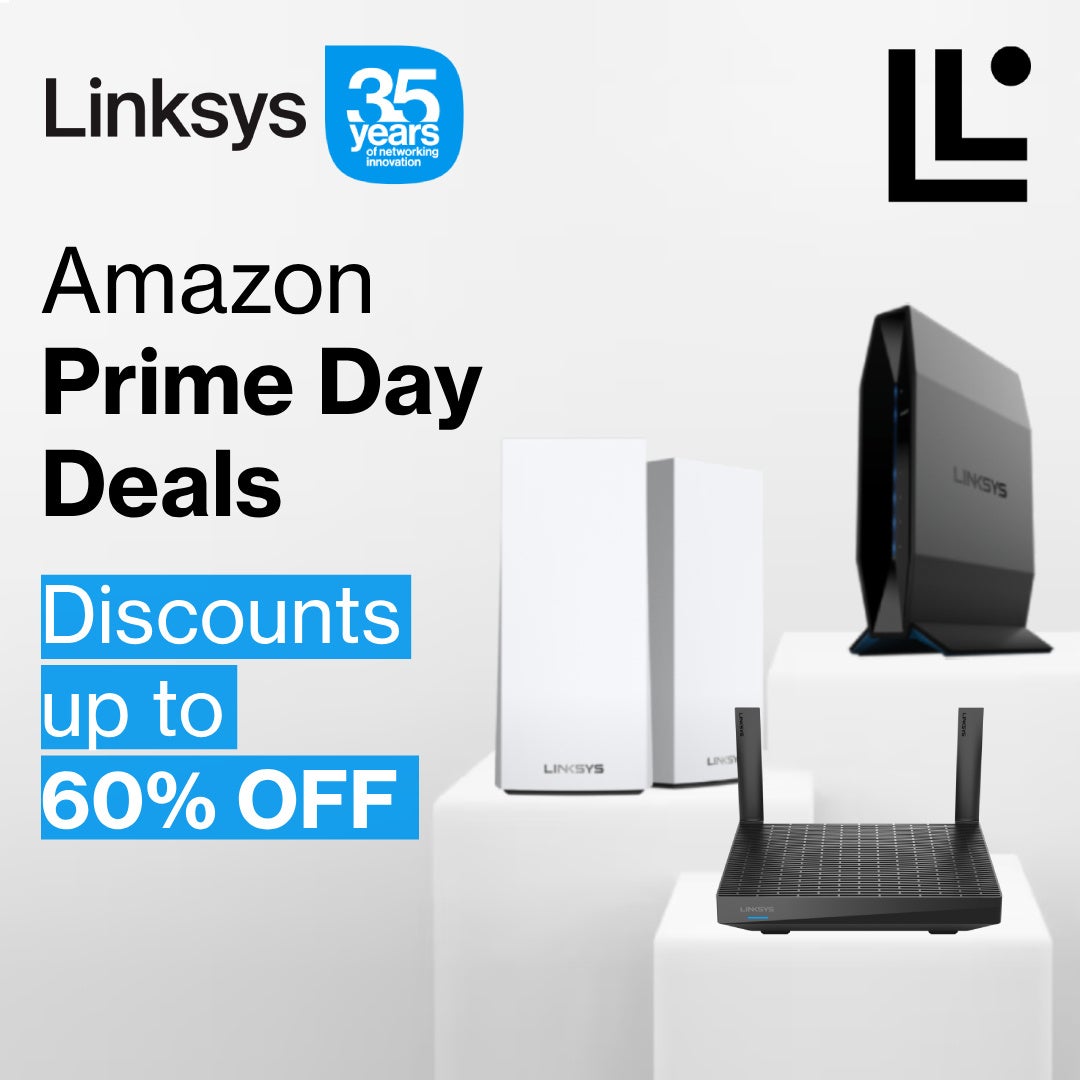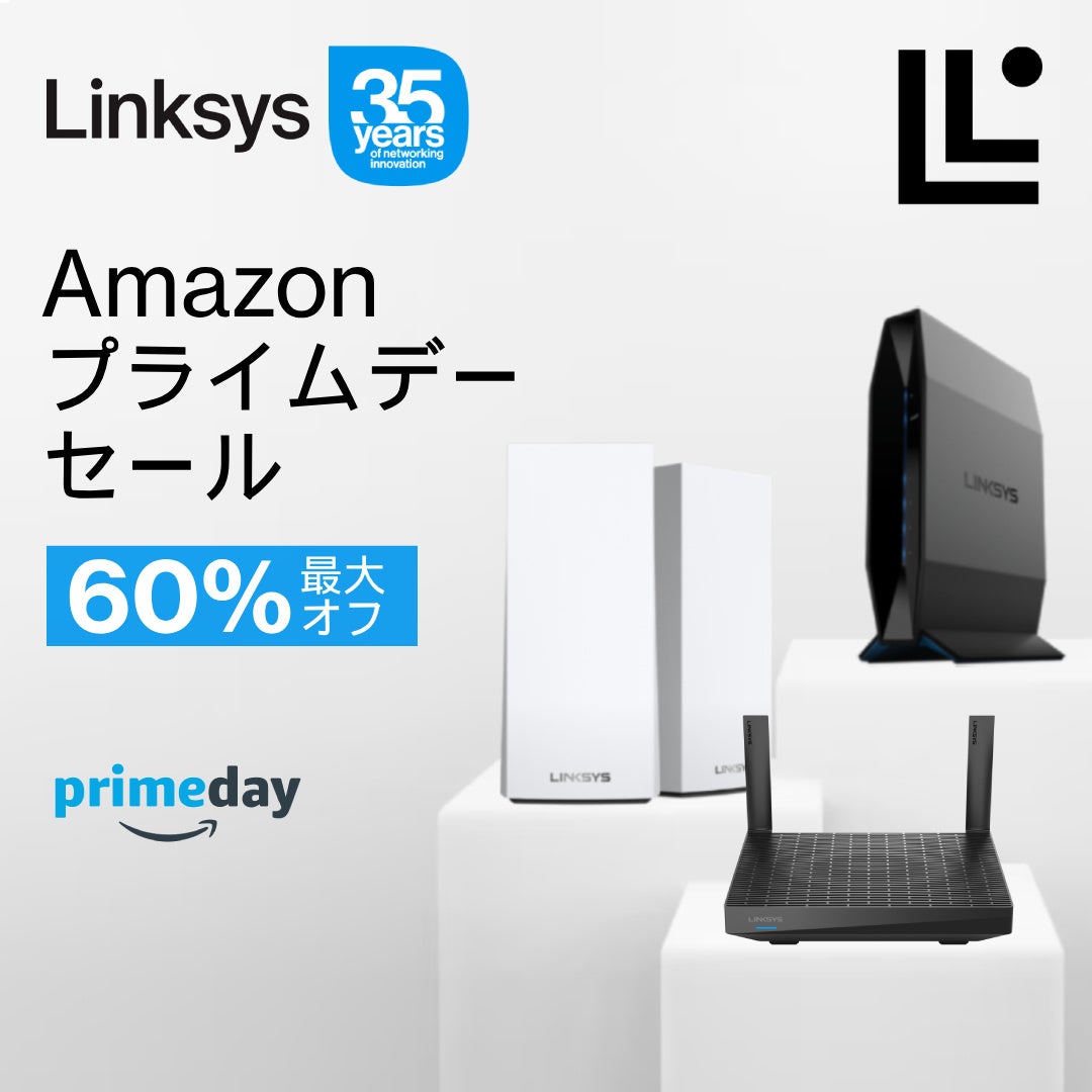 「Amazonプライムデー Linksysの最高にお得なディールで、自宅&オフィスのWiFiをアップグレードしましょう。セール対象期間はアマゾンPrime Dayの2日間限定、7月11日(火曜日)から7月12日(水曜日)。