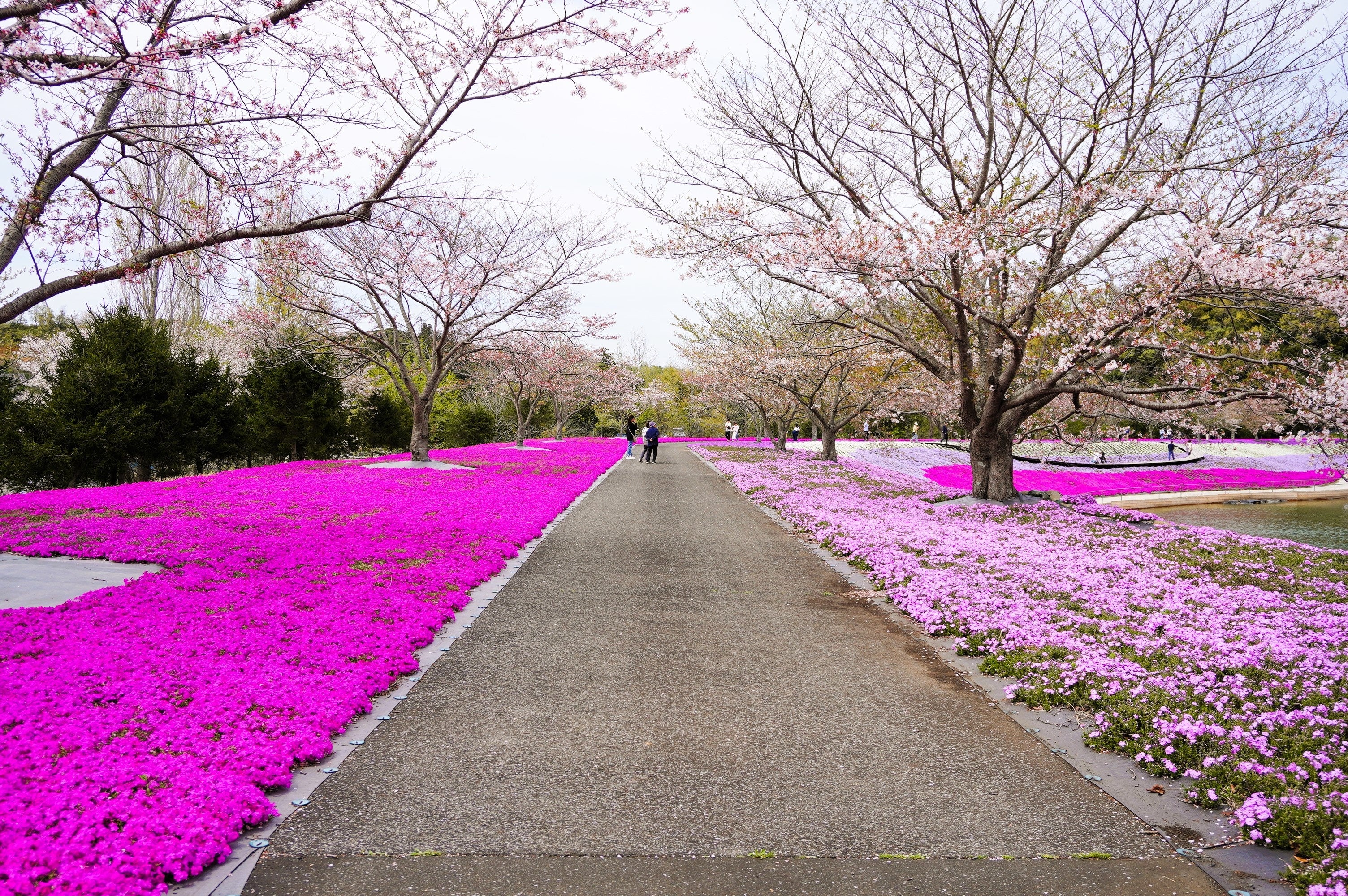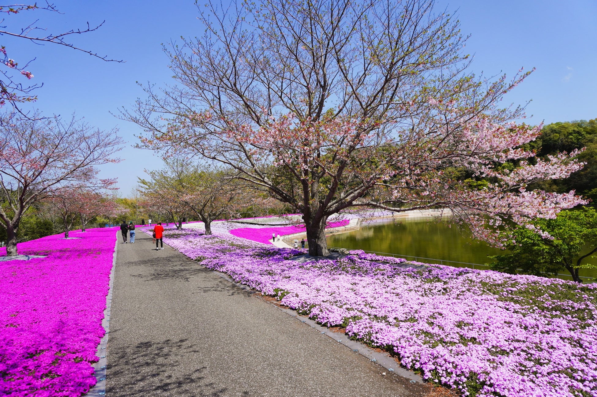 東京ドイツ村では、現在「芝桜」が見頃を迎えております。ボート池近くの遊歩道沿いに、