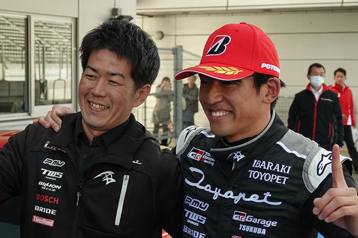 「スタートダッシュ良くて、横に並びかけることができてブレーキング勝負になって、ここで引いたら負けちゃうと思って、ブレーキは遅れて踏んで。結果的には止まらなかったんですけど(苦笑)、その後に混乱が1コーナーで起きて、その中でなんとか3番手で戻ってこられて、そこは本当に良かったと思います。3番手で再スタートして、前の選手がドライビングスルーでいなくなったので、結果的に2番手に上がって、そこからは1周の間にどこが弱いのかを見つけてはいましたが、その間にも後ろのペース良くて、後ろからも攻められる展開ではありましたが、なんとかガードしていました。僕のタイヤはグリップが残っていましたが、前の車はかなりプッシュしていたので、タイヤがもうなくなっていたのが見えていましたから、僕は温存していたメリットを使って、最終ラップの100Rで抜くことができました。86に乗り始めた頃から決勝の強さはありましたが、あとは予選だけというところで、今回は予選、スタート両方とも決まって課題はクリアでき、その後の展開も自分に味方してくれました。全体的に悪いところは、ひとつもなかったレースになりました」(中山選手)