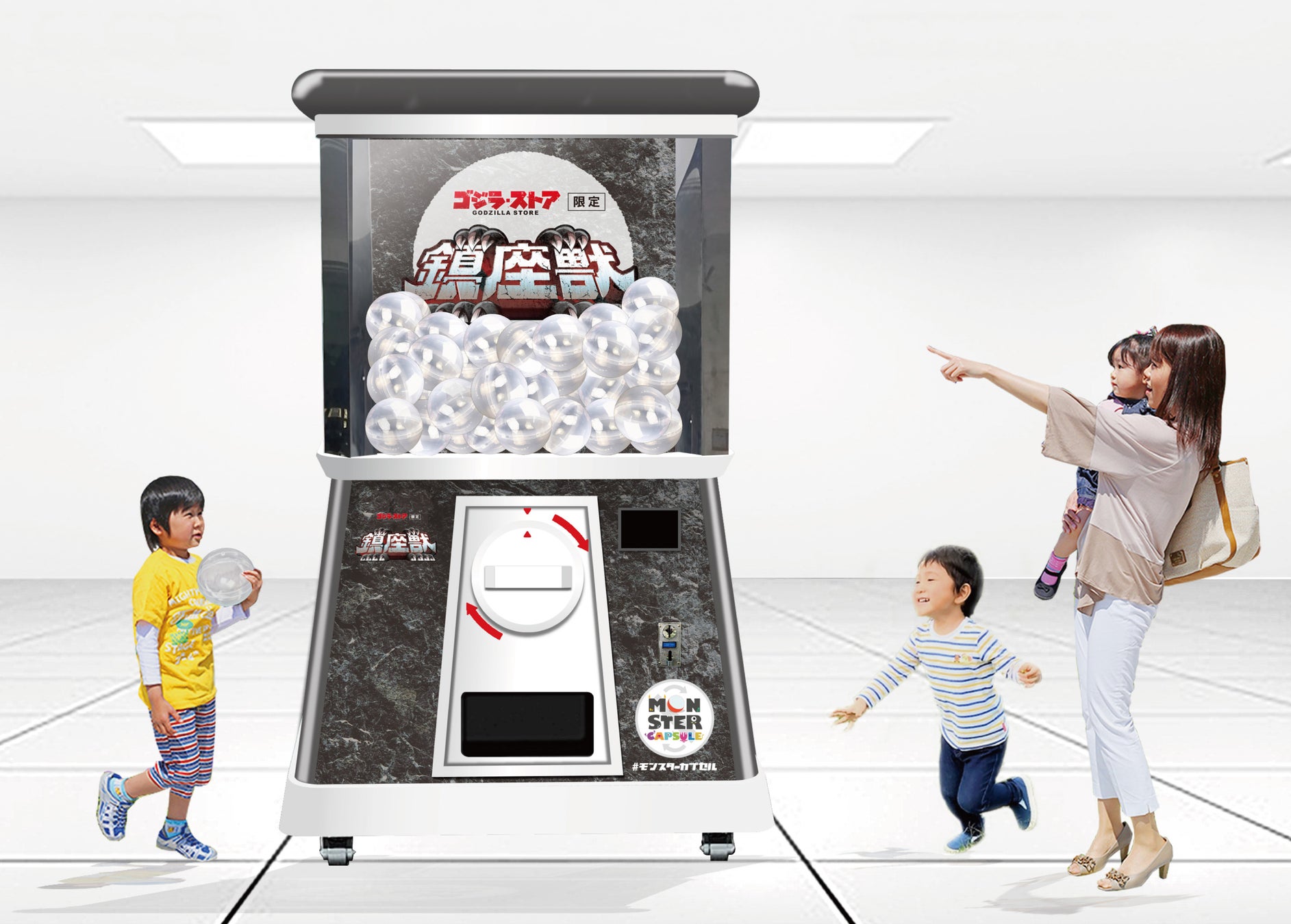 店内に日本最大級の巨大カプセルマシーン「モンスターカプセル」を設置。一回3,300円(税込)で、ゲームセンターで大好評のデフォルメフィギュア「鎮座獣」のゴジラ・ストアDaiba限定カラーバージョンをゲットできます。ぜひ挑戦してみてください!