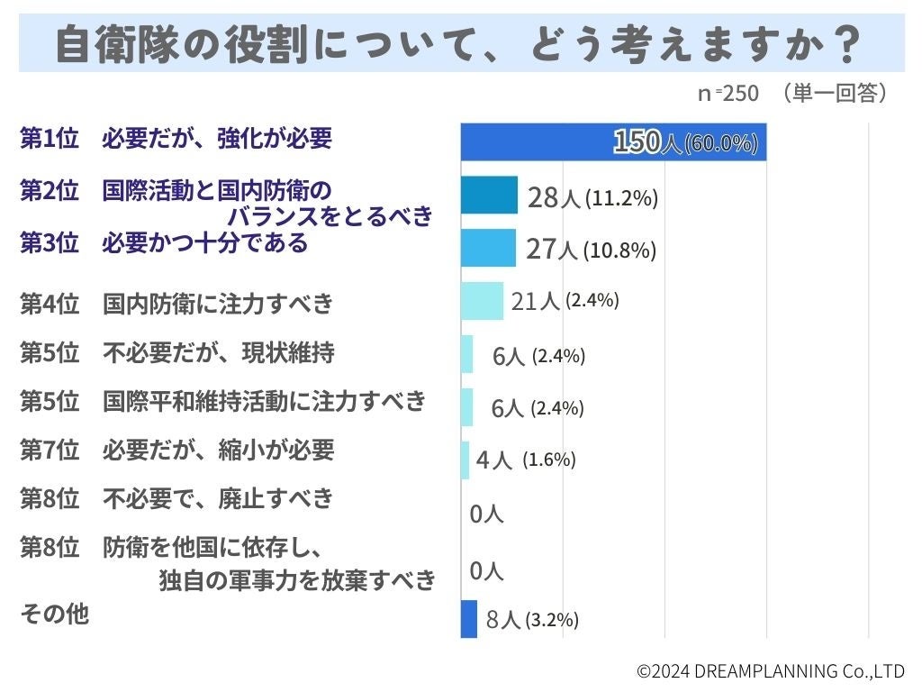 調査結果を見て、皆様はどのような感想を持たれたでしょうか。ドリームプランニングでは、これからも国防問題に関する様々な視点からアンケート調査を実施・発表してまいりますので、皆様のご参考にしてください。