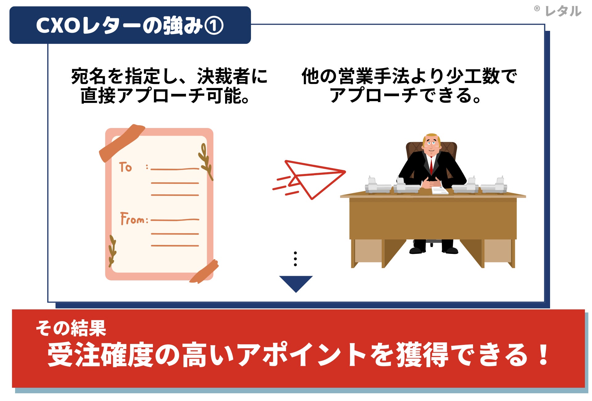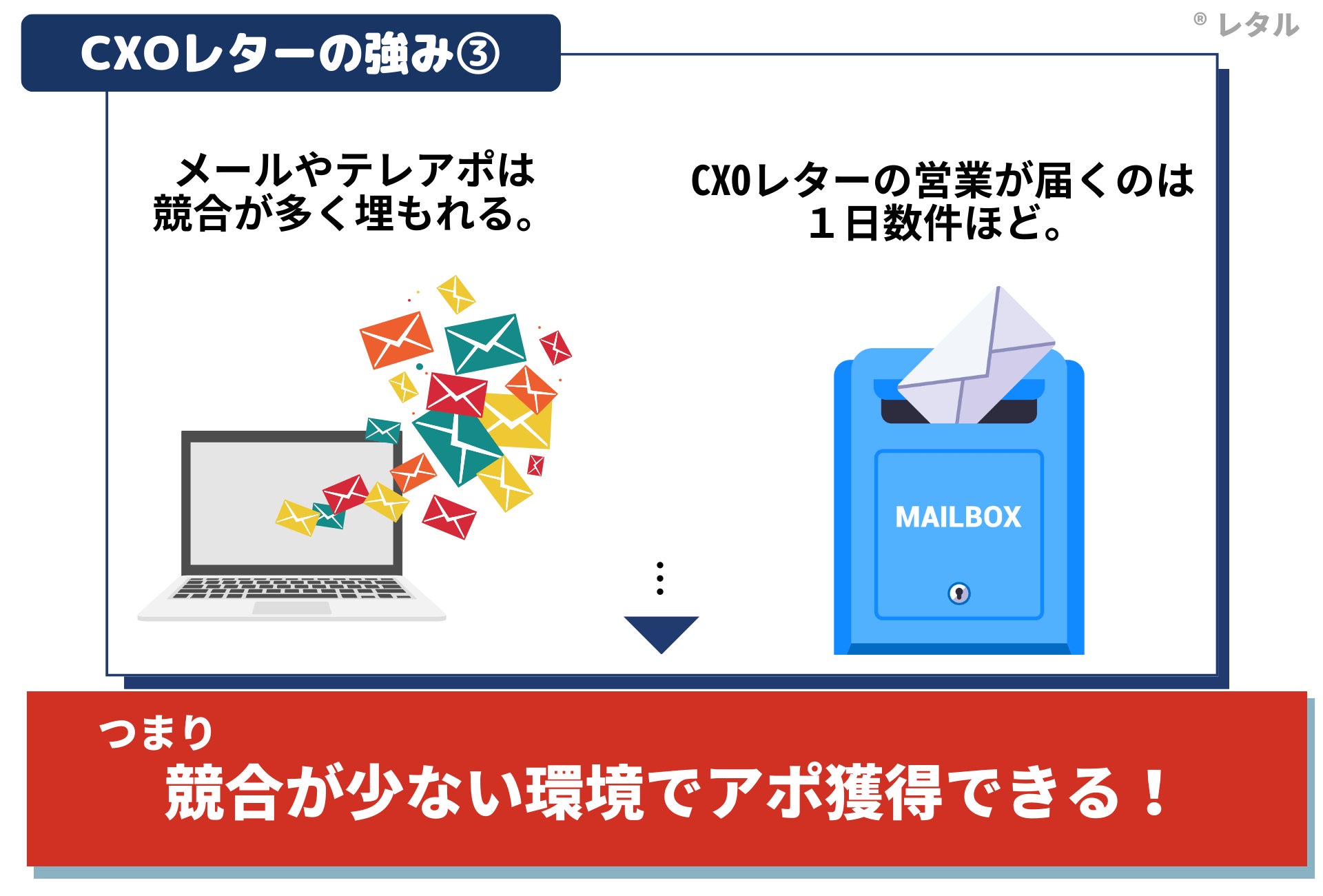 つまり、CXOレターであれば競合が少ない環境で効率的にアポイントを獲得できます。