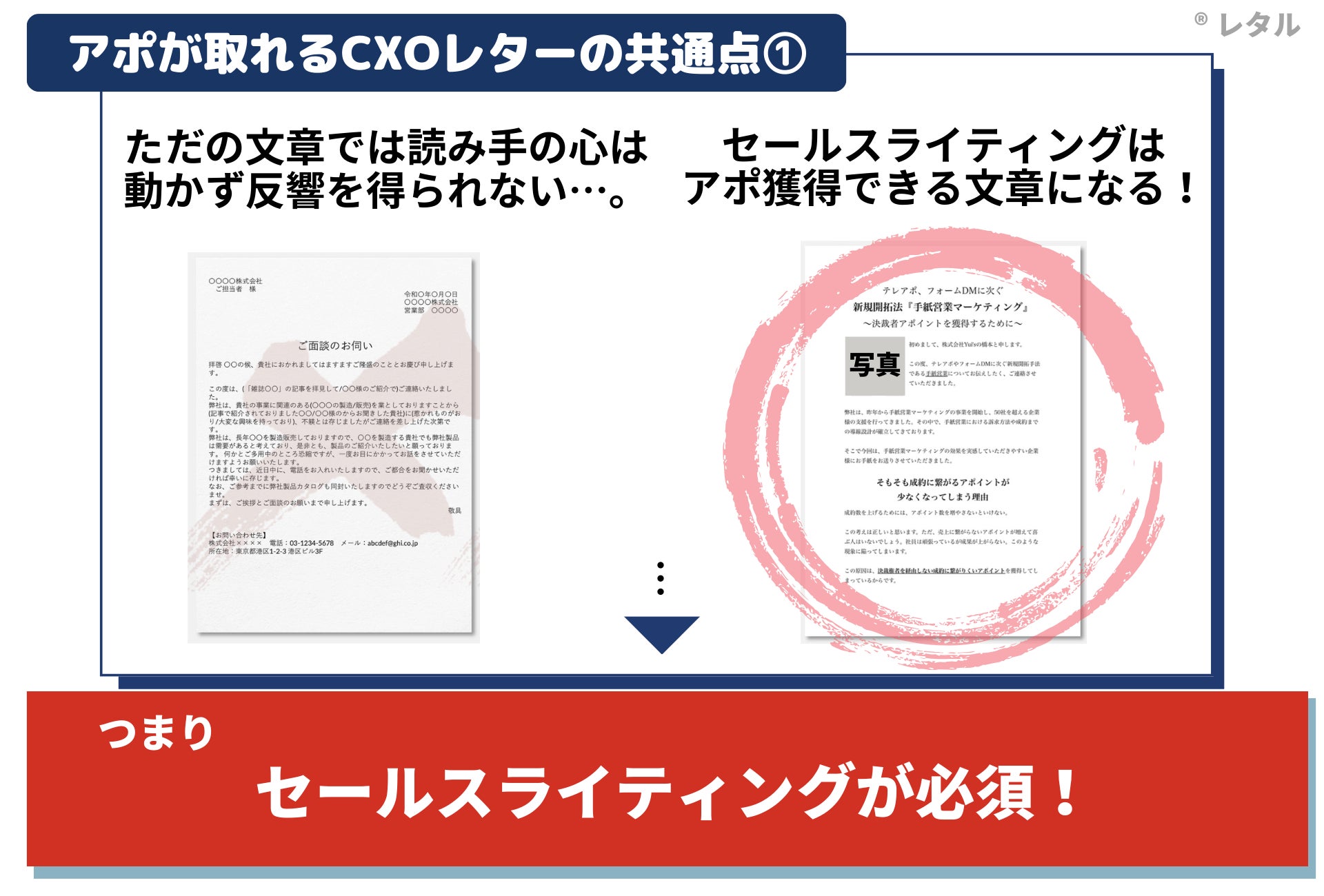 そのためアポが取れるCXOレターは共通して、セールスライティングで営業文を作成しています。