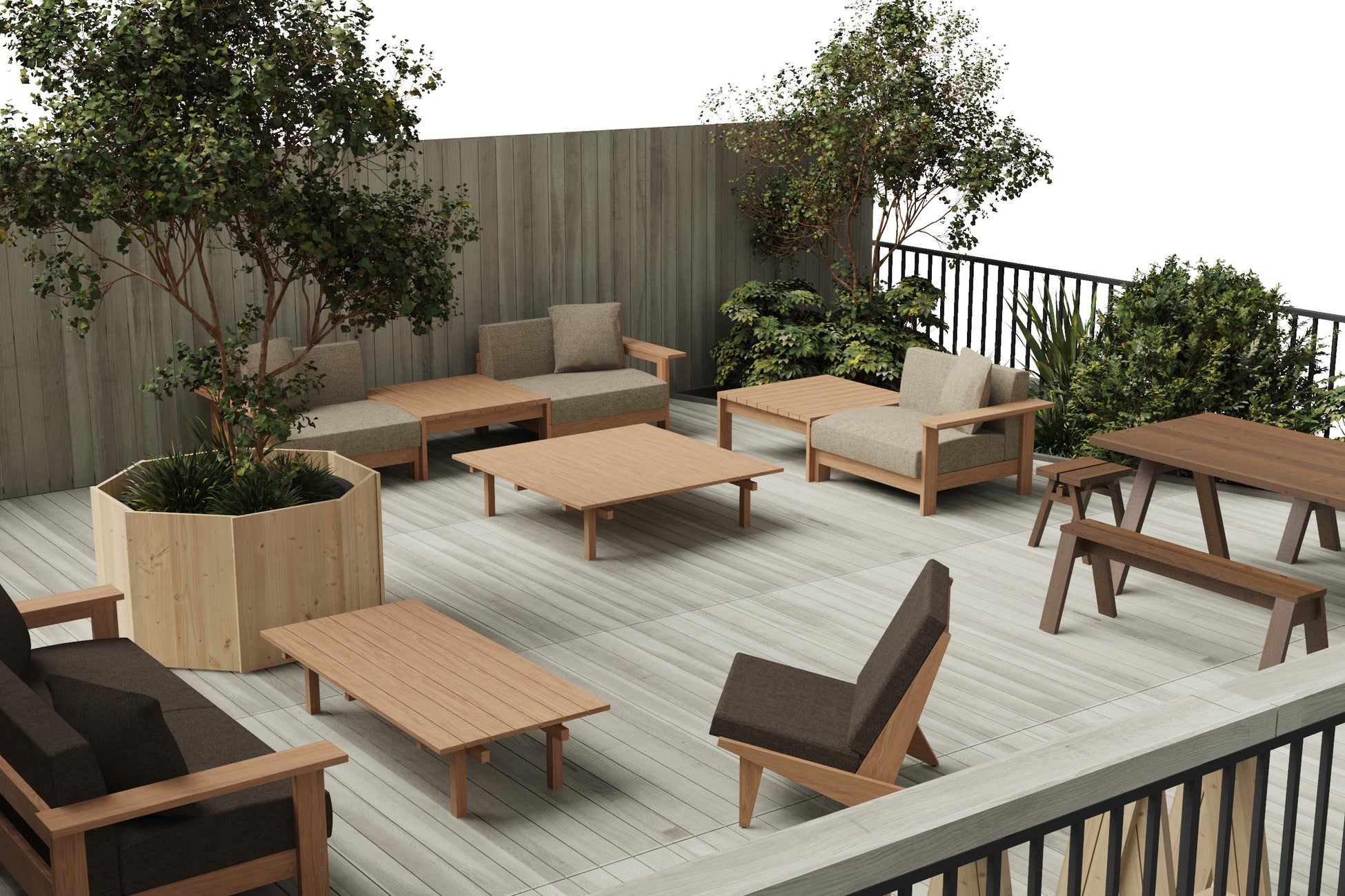 今年の「インテリア ライフスタイル2025」で初お披露目したアウトドア用のソファを新シリーズ“KOBO SOFA LOUNGE SERIES”としてKarimoku Commons Tokyo屋上にて展示を開始いたします。