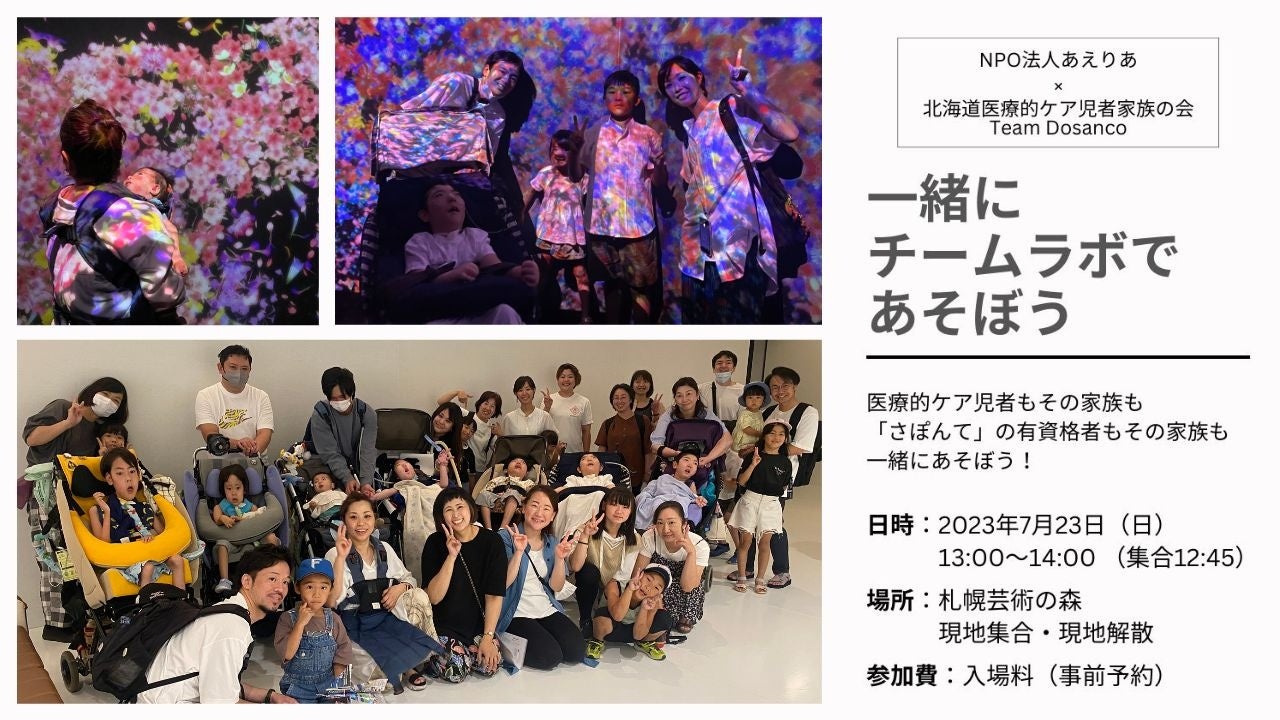 その接点づくりとして、NPO法人あえりあと北海道医療的ケア児者家族の会Team Dosancoのコラボで、札幌芸術の森に来るチームラボで一緒にあそぶ機会を企画しました。
