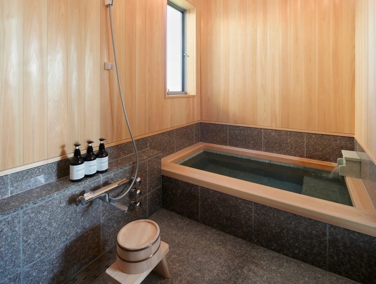 源泉掛け流しの伊豆高原温泉を備えた客室風呂で、お好きな時間に心身をゆったりと癒やし、贅沢な湯のひとときをお楽しみいただけます。