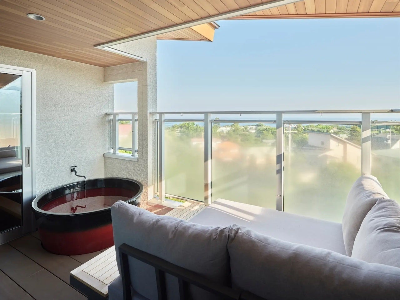 源泉掛け流しの伊豆高原温泉を楽しめる客室風呂と屋外ジャグジーを備え、いつでも身体を癒やす贅沢な湯浴みをご堪能いただけます。