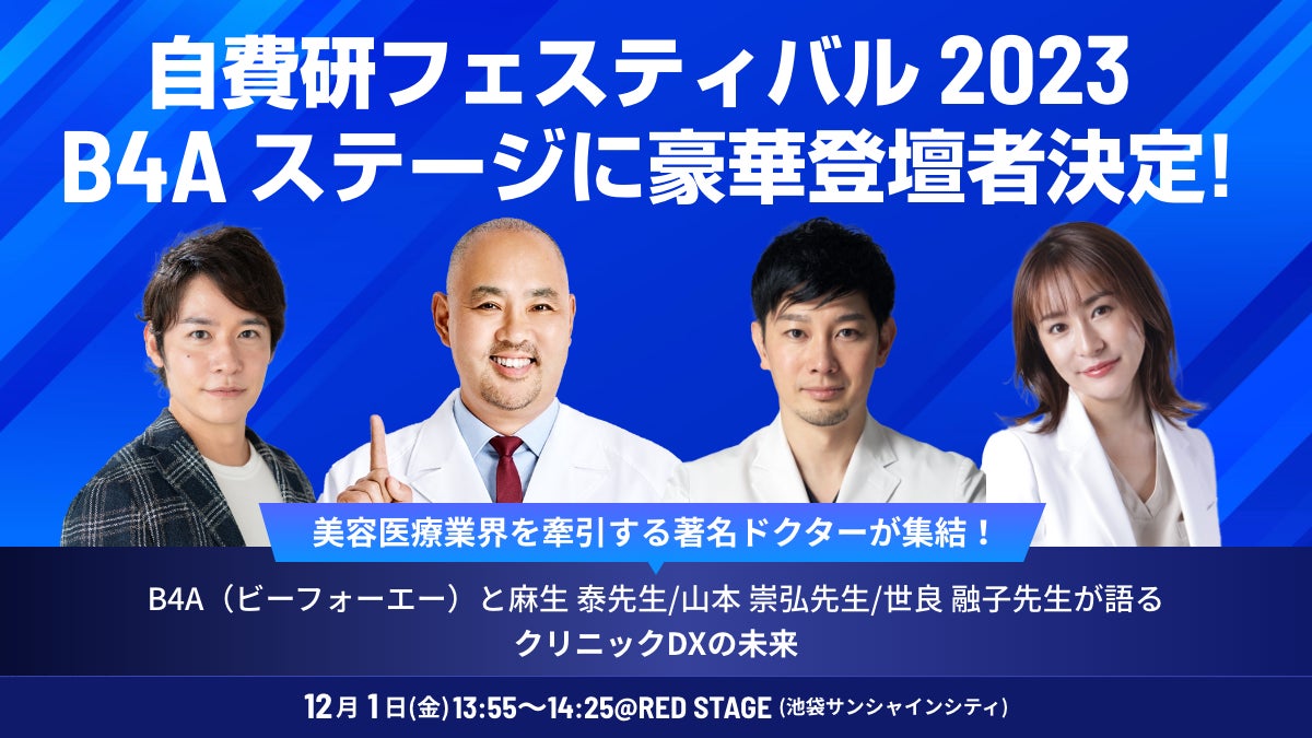 【12/1(金) 自費研フェスティバル 登壇決定】美容医療業界を牽引する著名ドクターが集結!B4A(ビーフォーエー)と麻生泰先生/山本崇弘先生/世良融子先生が語る、クリニックDXの未来