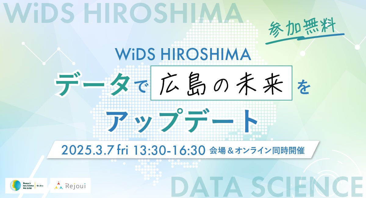 株式会社Rejoui(リジョウイ、代表取締役 菅 由紀子)が運営する「WiDS HIROSHIMA(ウィズひろしま)」が、3月7日(金)に広島市内で開催されます。本シンポジウムでは、広島県と縁のある女性スピーカーが登壇し、データサイエンス分野におけるメンタルヘルスの取り組みやデータを活用したスポーツ栄養学の事例のほか、昨年開催した生成AI活用プログラムの参加レポートを共有します。また、「データと野球」をテーマにプロ野球球団を例に挙げた解説など、多彩な内容を予定しています。会場は広島市内で、無料でどなたでも参加可能です。(オンライン同時配信)イベント後にはスピーカーや参加者同士が交流できる懇親会も実施します。
