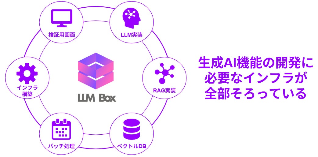 【低コスト&短期間でAI機能を追加】AI開発に必要なインフラを一式実装済み。SaaSや業務システムに生成AI(LLM)機能を短期間・低コストで組み込める開発パッケージ「LLM Box」を提供開始。