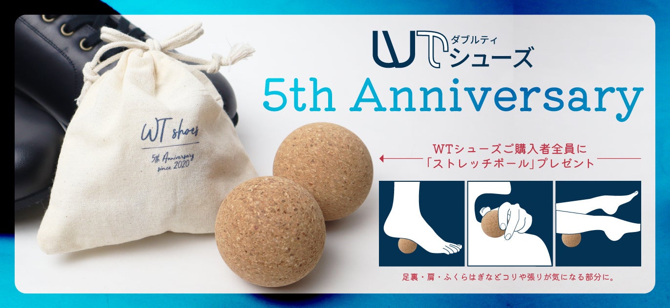 WTシューズ発売開始から5周年を記念して購入者全員もらえるノベルティプレゼントキャンペーン開催。父の日ギフトにもおすすめ。