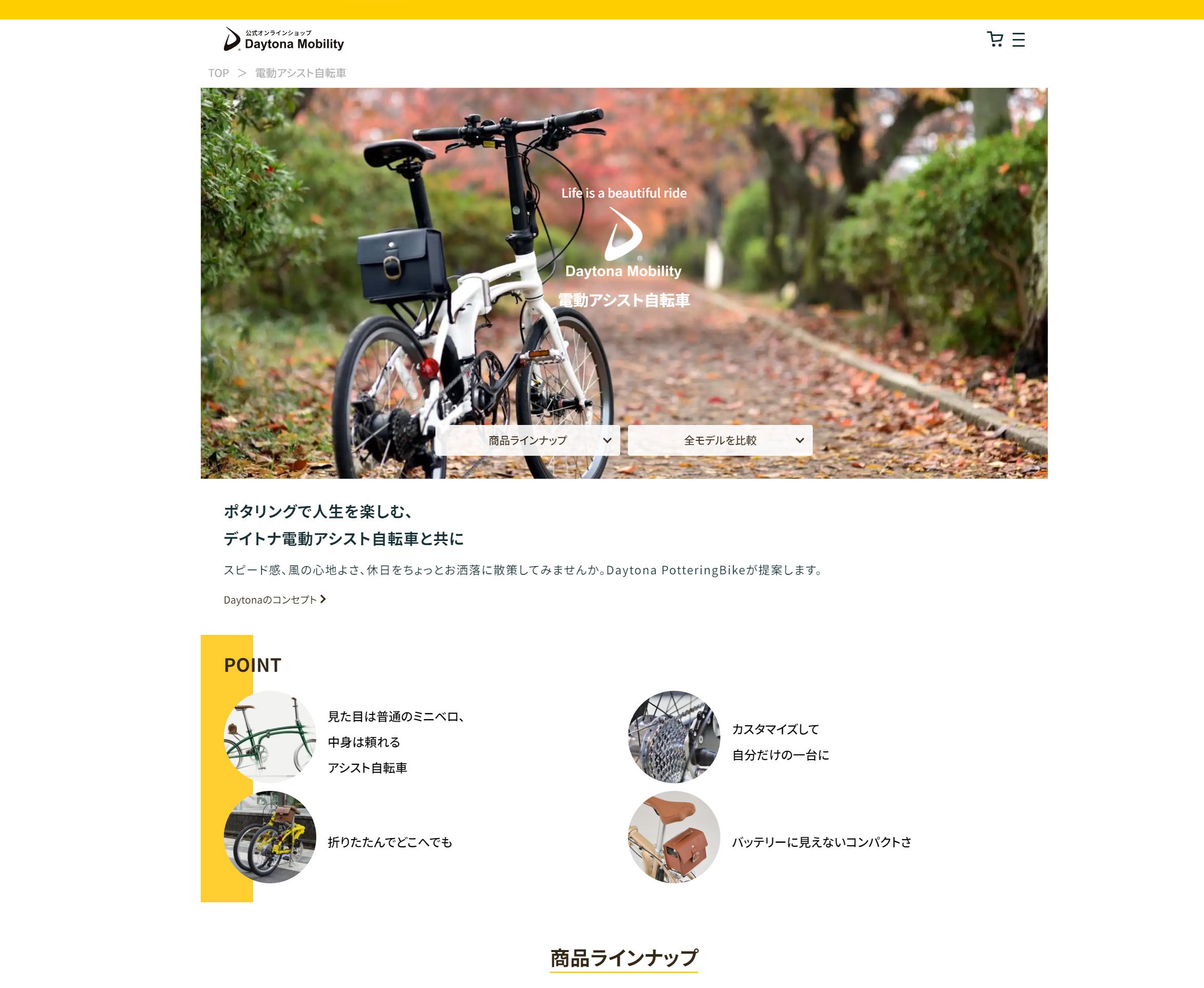 今回オープンするECサイトDaytona Mobility Shop(デイトナ モビリティショップ)はECの便利さと実店舗の安心感を融合させたECサイトになっています。