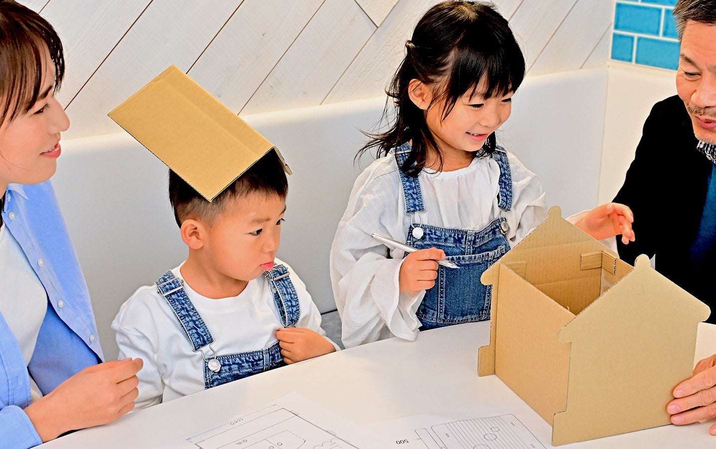 家づくりの打ち合わせは、こどもには退屈かもしれません。でも自分のための家も一緒に作るとなれば、きっとワクワクするはず。そこでホロスホームで家を建てるファミリー向けに「無料」で、一級建築士がダンボールハウスを作るサービスを始めることにしました。