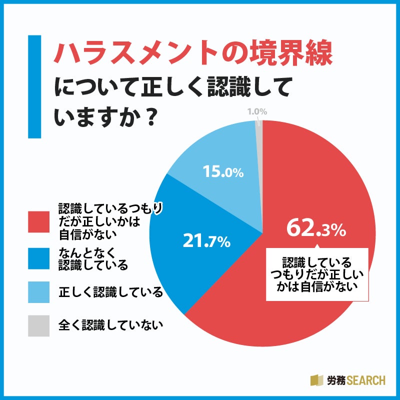 ・ハラスメントの境界線は「認識しているつもりだが正しいかは自信がない」方が62.3%