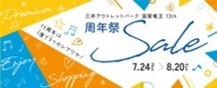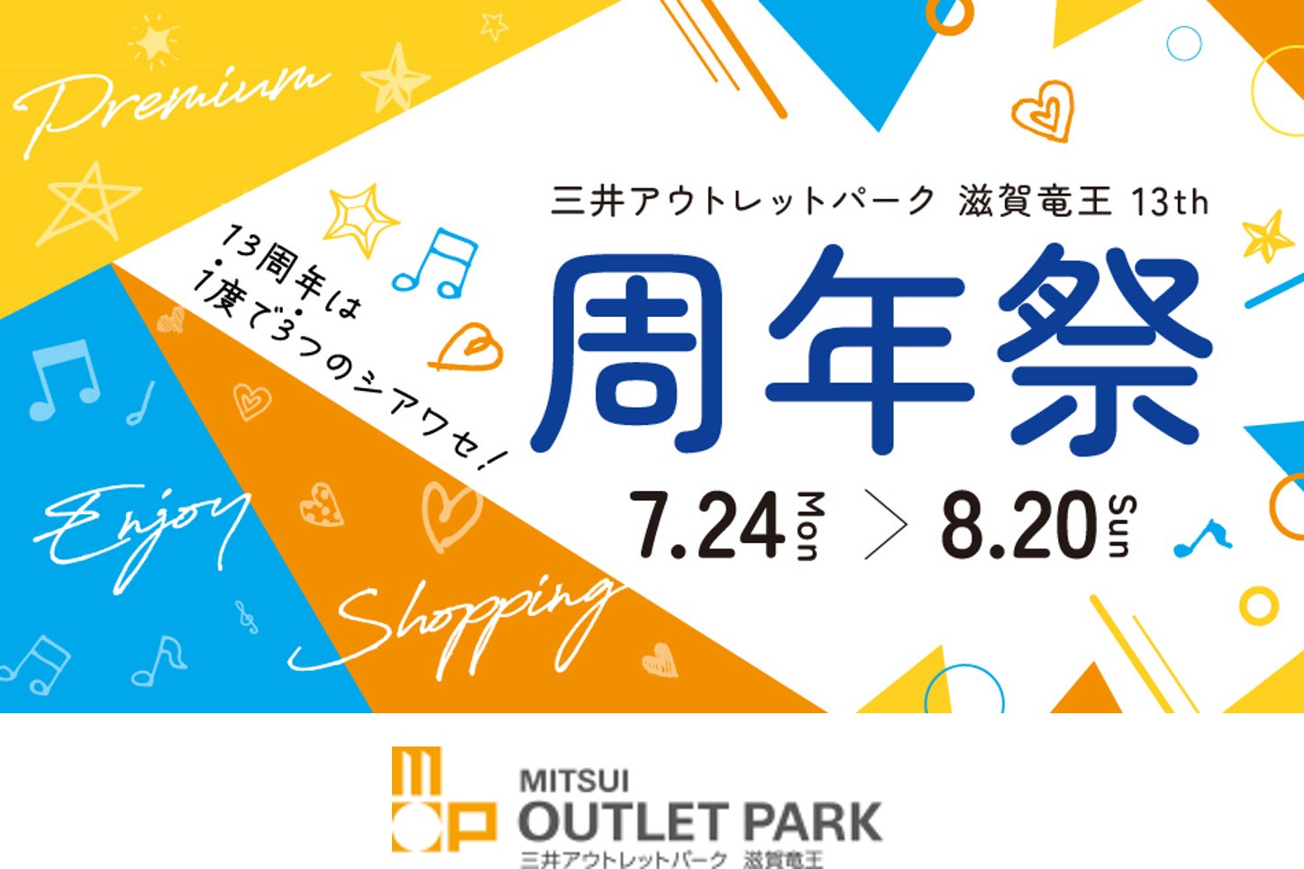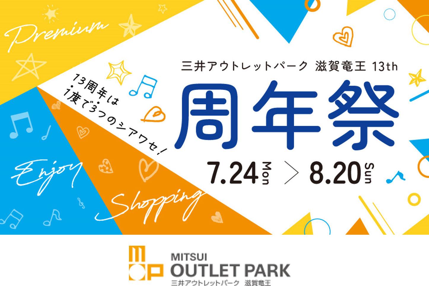 【三井アウトレットパーク 滋賀竜王】夏のおトクなセールや楽しいイベントが盛りだくさん!13周年は1度で3つのシアワセ!『周年祭』を開催!