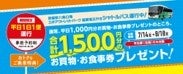ご来館当日15時以降に竜王IC出口をご利用の方、各日先着50名様に、お買物・お食事券1,000円分をプレゼント!
