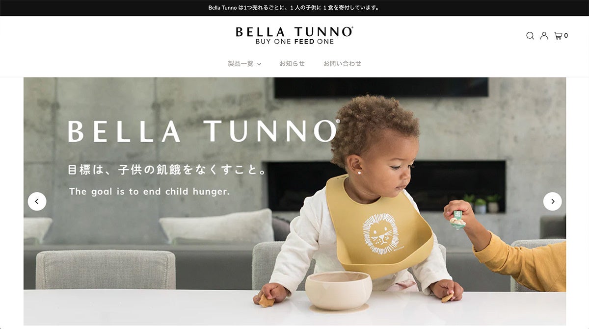 ベラトゥーノは、2005 年にアメリカでミシェルという一人の女性によって立ち上げられました。彼女は、貧困などの弱い立場にある子どもたちに何か支援ができないかという思いを持って、ビブとバープクロスの制作販売からビジネスをスタートさせ、困っている子どもたちへの寄付を行い、活動を続けてきました。そして今、家族の大切さやパートナーシップの重要性、誠実さや革新の必要性を学び、多くの食事を寄付することができました。これからも人々の笑顔と子供たちのためにデザインされた製品を発表していきます。