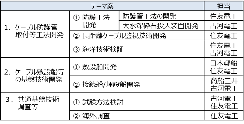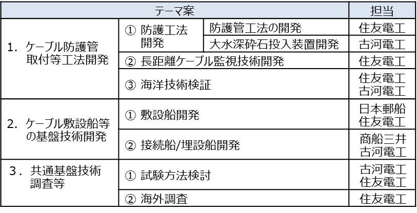 ケーブル防護管取付などの工法開発および新型ケーブル敷設船などの基盤技術開発