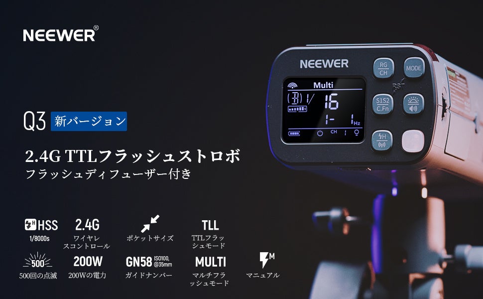 URL:https://neewer.jp/neewer-q3-200w-24g-ttl-flash-strobe-10101740?ref=neewer