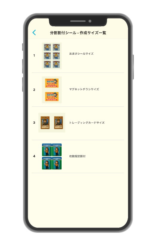 「分割割付シール」作成機能でつくれる4種類12サイズ