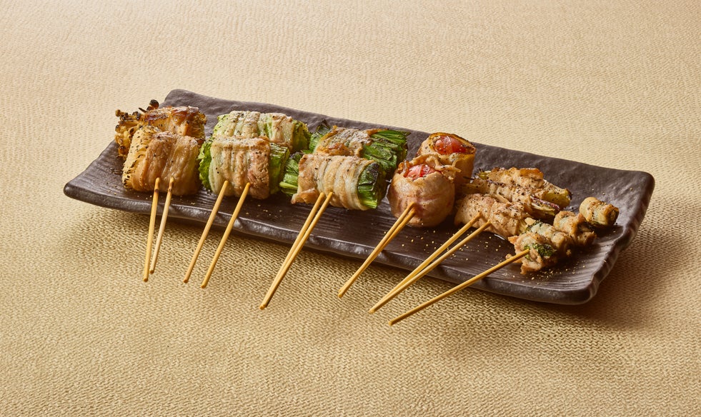 ねぎま 、ぼんじり、砂ずり 、こころ(ハツ)、とり皮、ささみチーズ 、ささみ梅しそ 、ささみワサビ、うずら串