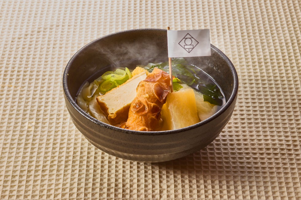 「出汁と旬食材をこだわればおでんは365日美味い」がコンセプトで自慢の究極の鱧出汁は様々な食材を活かし食材の旨味と融合し『出汁までおいしく飲めるおでん』に仕上げています。 こだわりの卓上の薬味 (特製濡れ一味、柚子胡椒、辛子、ハリッサ)、お通し代わりに提供するオリジナル薬味 ( ねぎ醤油と山わさび ) やトッピングのブルーチーズやジェノベーゼなどでここにしかない“カスタマイズおでん” も楽しめる、新感覚の大衆おでん酒場です。