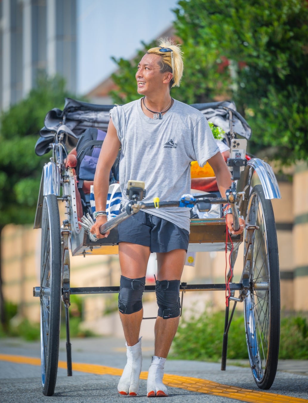 1990年、京都府生まれ。23歳の時に、人力車と出会う。浅草で人力車の仕事をしながら、日本の文化である人力車で世界中の人々との交流を目的に、2016年からは世界初となる人力車による世界一周に挑戦している。アジア、ヨーロッパ、オーストラリアを巡り、現在はコロナ禍のため米国横断を中断、一時帰国し北海道から沖縄までの3,000kmを各市町村で地域活性をしながら縦断。その後、アメリカ横断5,100km横断達成。