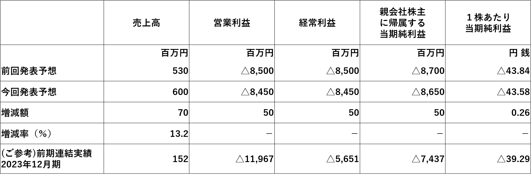 当該契約に伴い当第2四半期において契約一時金が計上されることから、2024年12月期の当社連結業績予想を以下のとおり修正いたします。