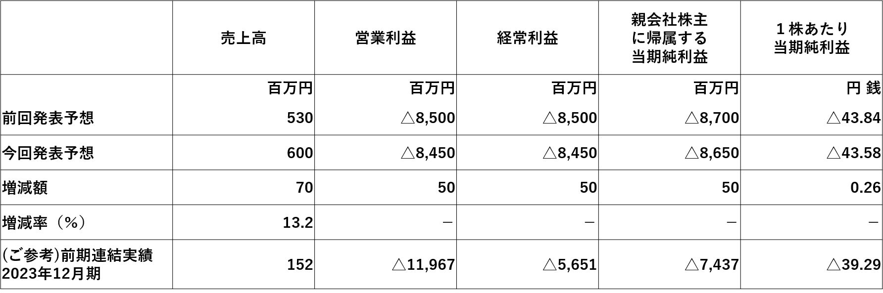 2024年12月期連結業績予想(2024年1月1日~2024年12月31日)