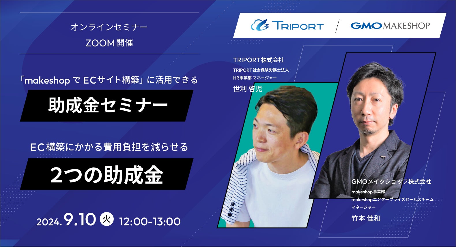 TRIPORT社会保険労務士法人(代表社員:岡本 秀興、以下 TRIPORT)は、GMOインターネットグループのGMOメイクショップ株式会社(代表取締役社長CEO:向畑 憲良、以下、GMOメイクショップ)と連携し、中小企業向けに助成金を活用したECサイト構築支援を開始しました。