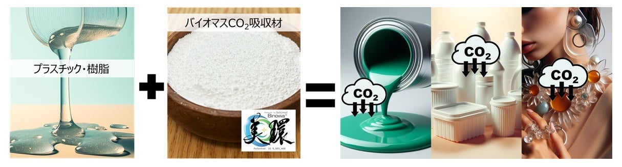 事業内容 :バイオマスCO₂吸収材”美環”およびそれを用いたCO2吸収プラスチック/樹脂製品の開発製造販売