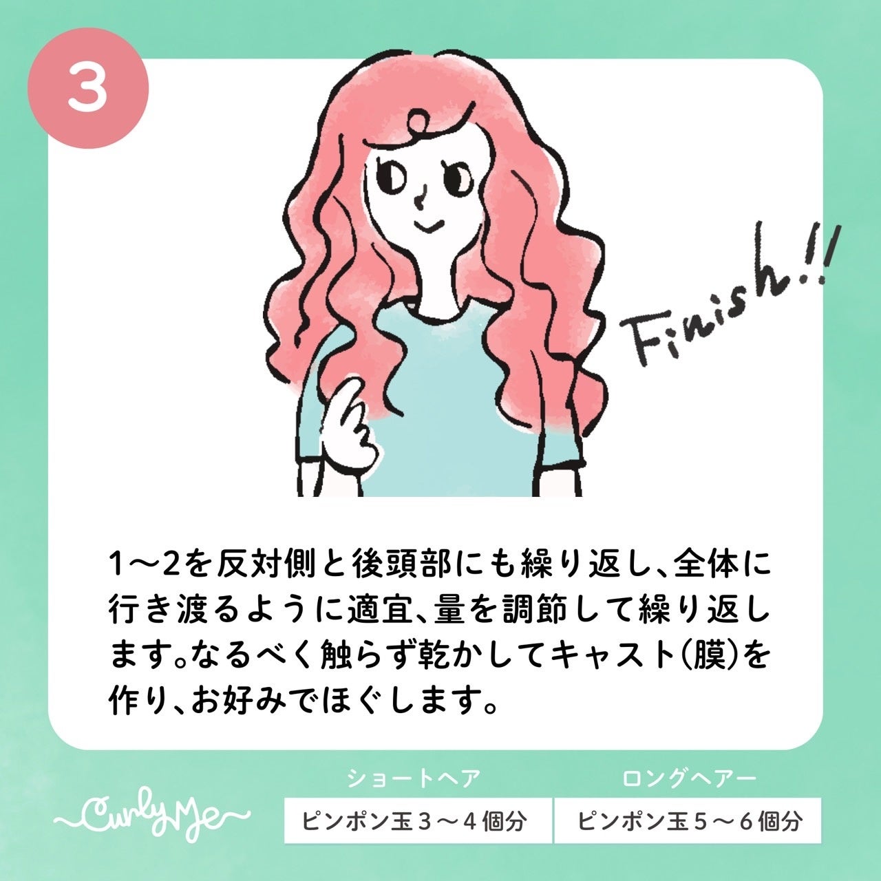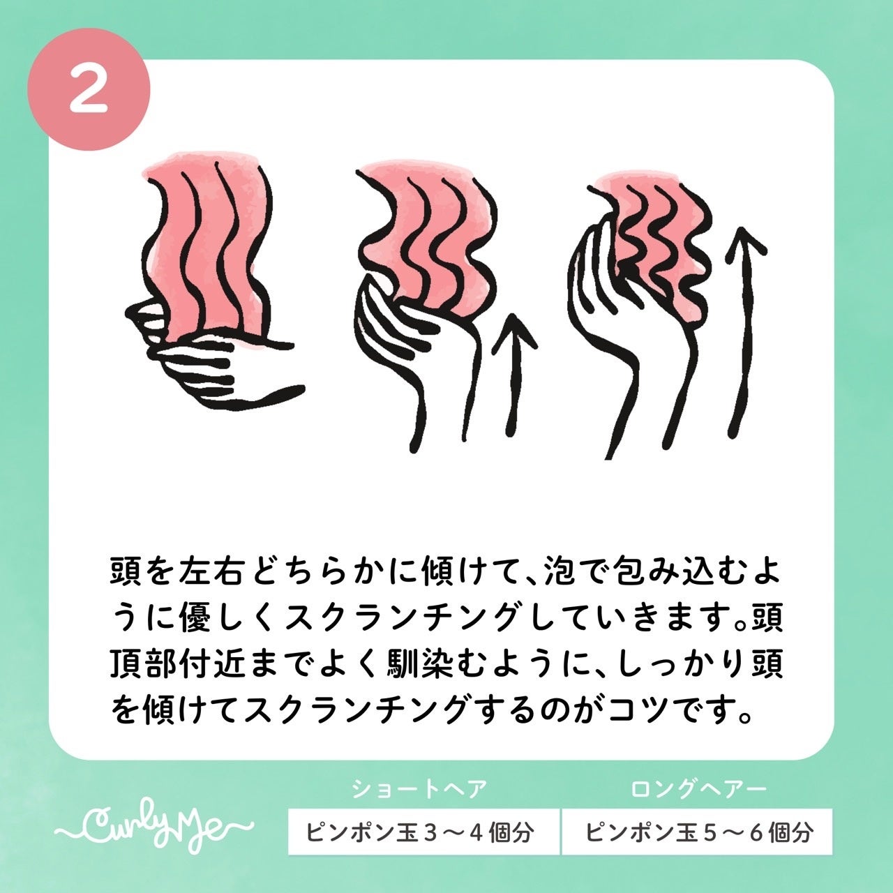 ※スクランチングとは、髪を下から上へ揉みこんでカールを作る動作です。