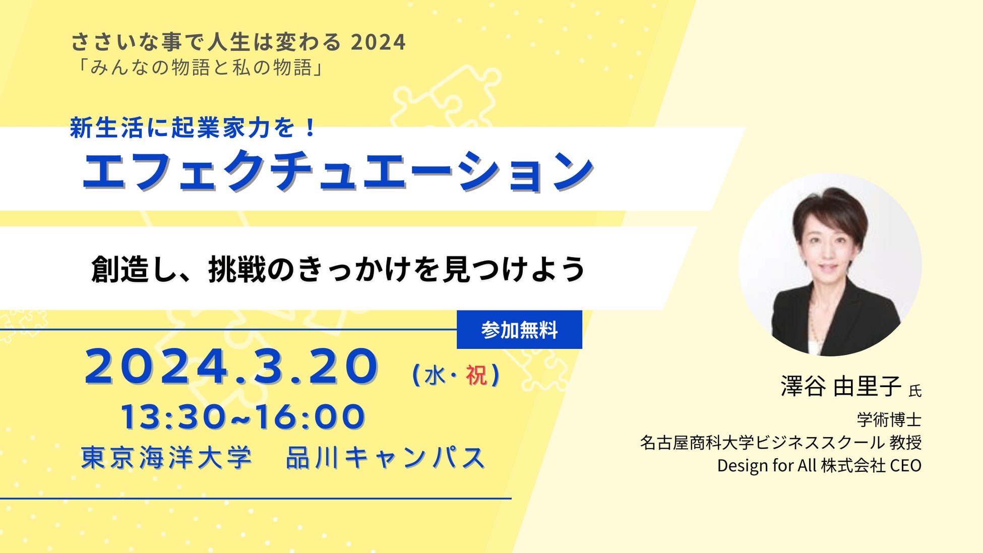 【2024年3月20日イベント開催】新生活に起業家力を!「エフェクチュエーション」で創造&挑戦のきっかけを
